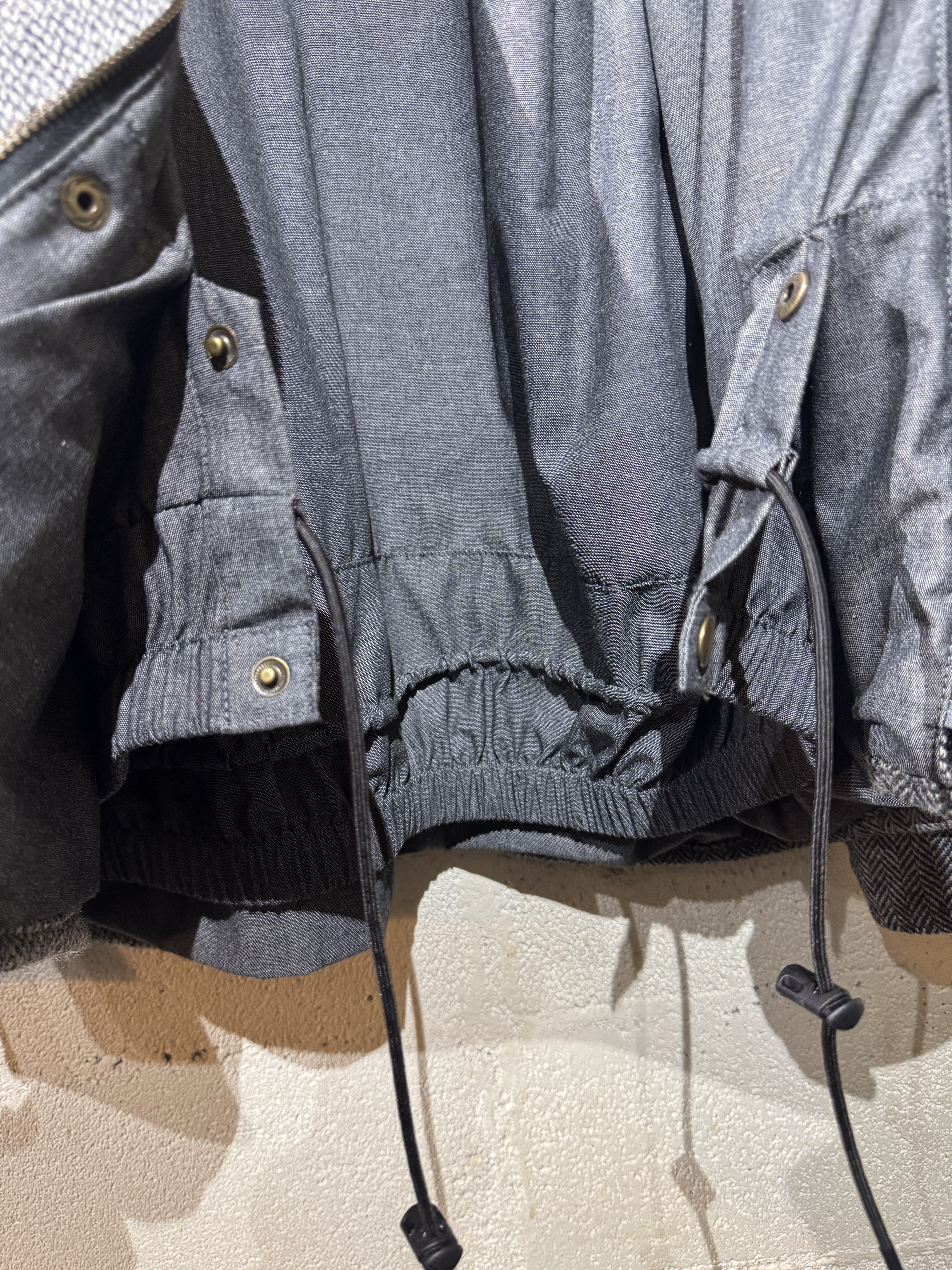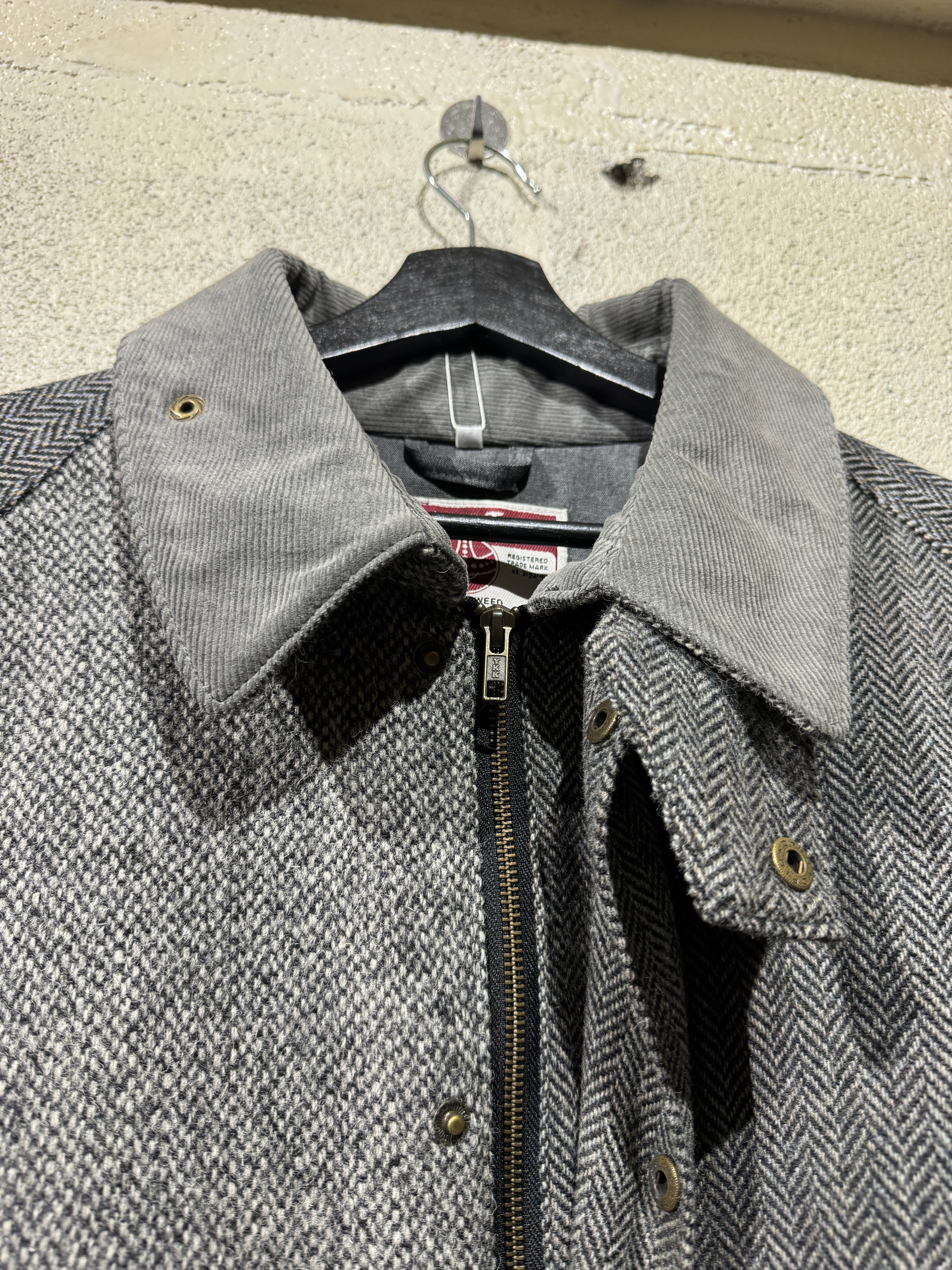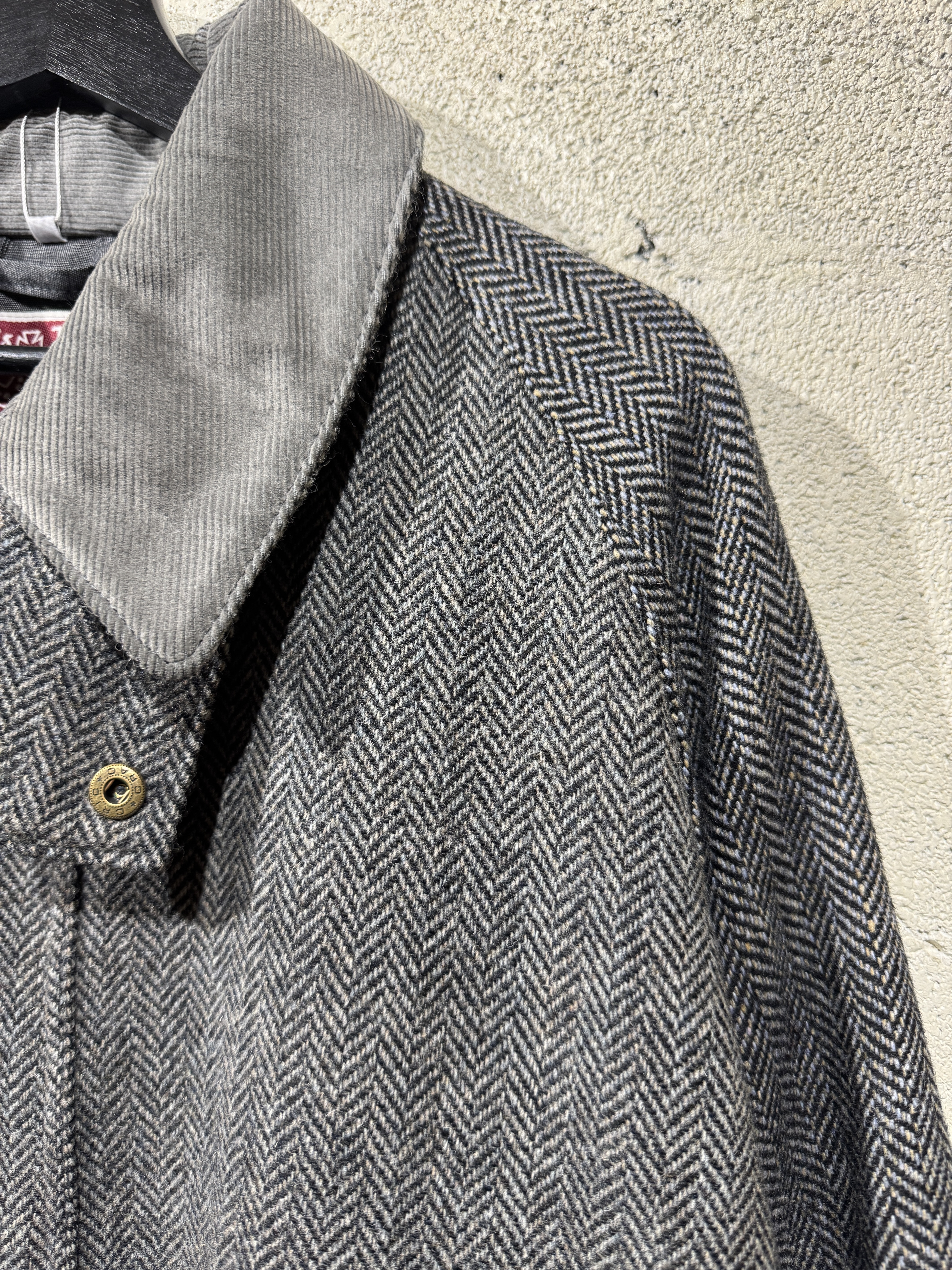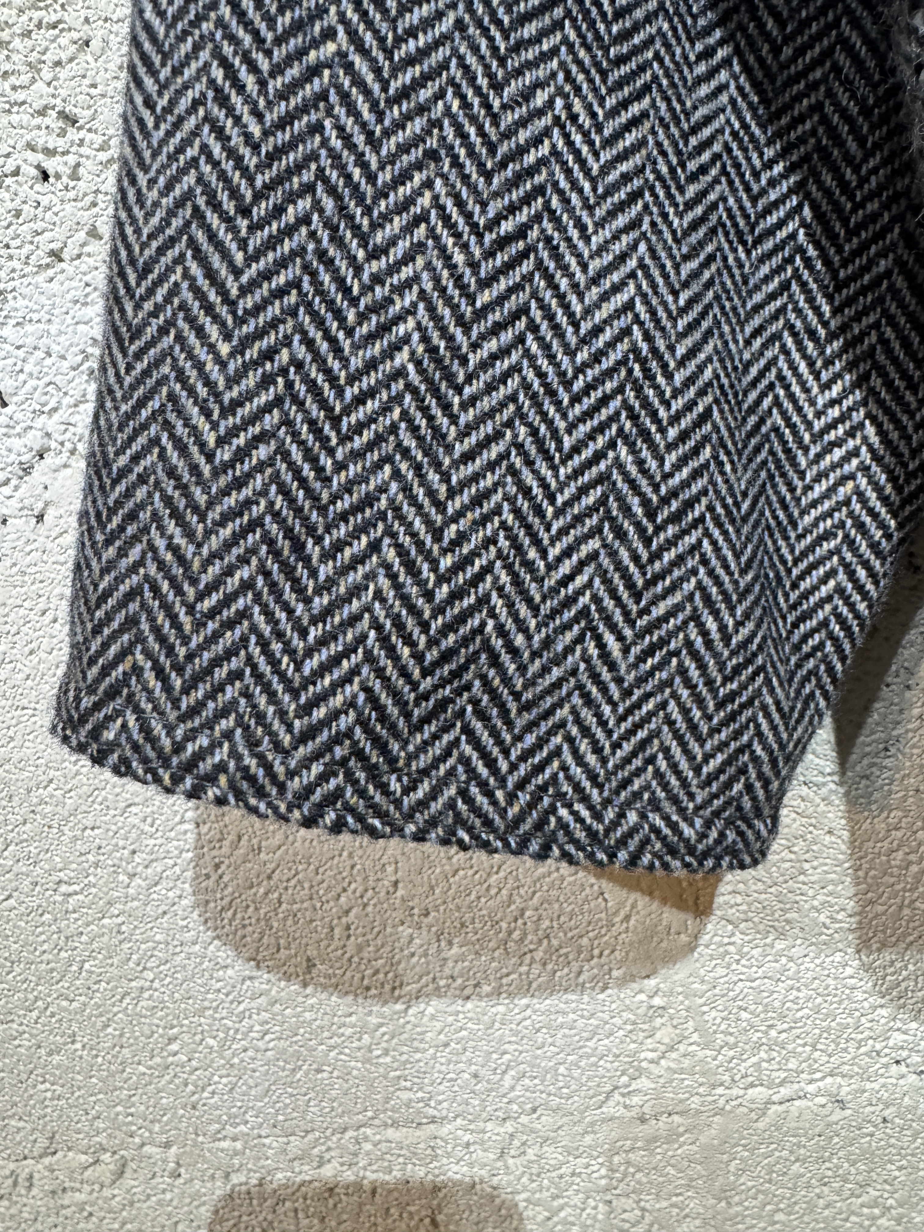 Hariss tweed drivers jacket ビンテージのハリスツイードジャケットを解体しドライバーズジャケットに再構築しました。 シルエット、サイズ感はyousedレザードライバーズジャケットと同じです。 ややゆったりとしたコーチジャケットタイプで合わせやすいデザインです。 カラーは大まかにブラウン系とグレー系の2種類、襟のコーデュロイもボディカラーに合わせてあります。 尚、ビンテージのハリスツイードを使用してますので全て1点ものとなり個性を大切にしたyousedらしいデザインです。 サイズは1、2の2サイズ展開です。 当商品のカラーはグレー系です。 着画は170cm.60kgのものがサイズ1を着用しています。 詳細寸法 サイズ:1 着丈:68cm 身幅:68cm 裄丈:87cm