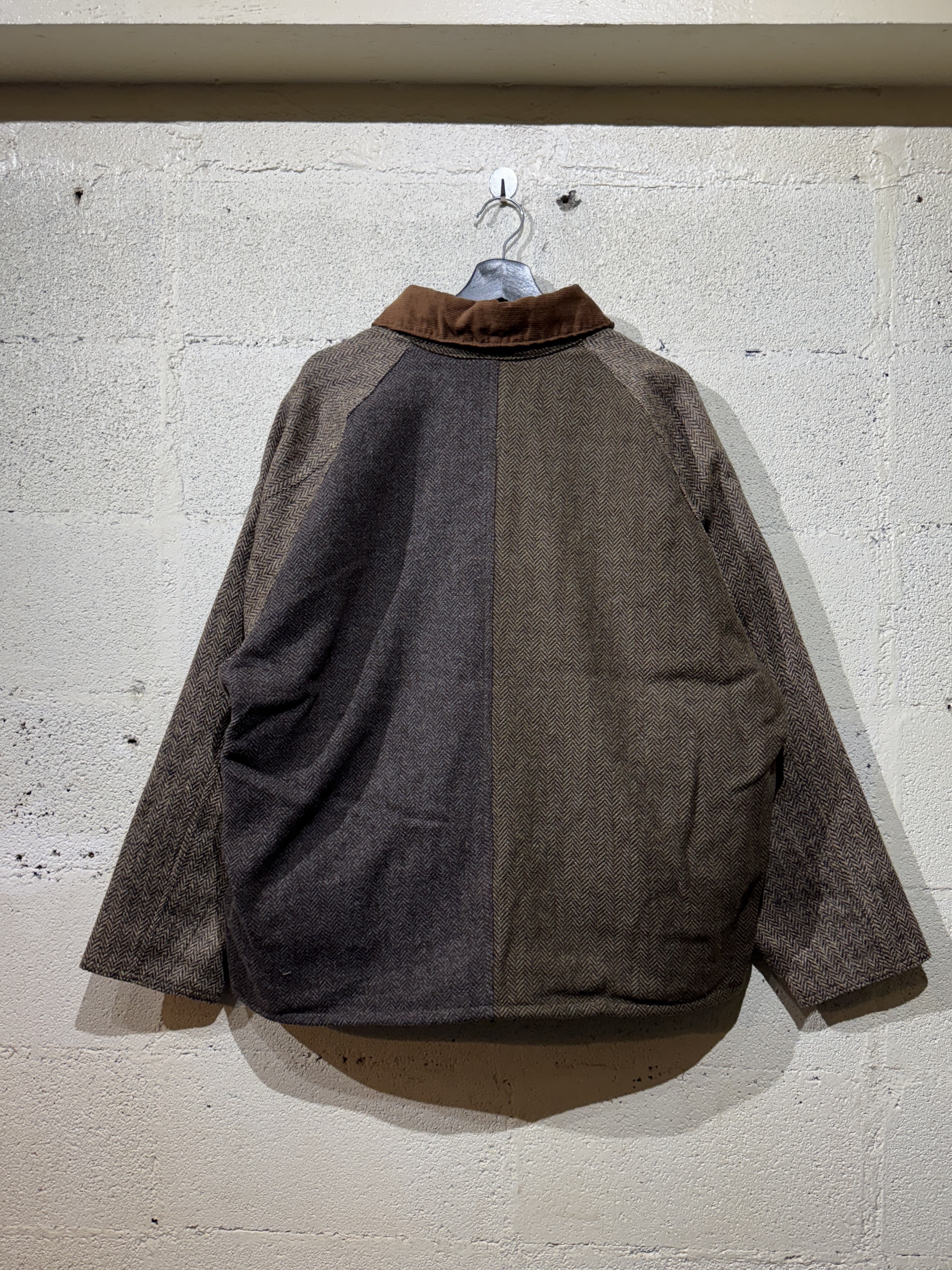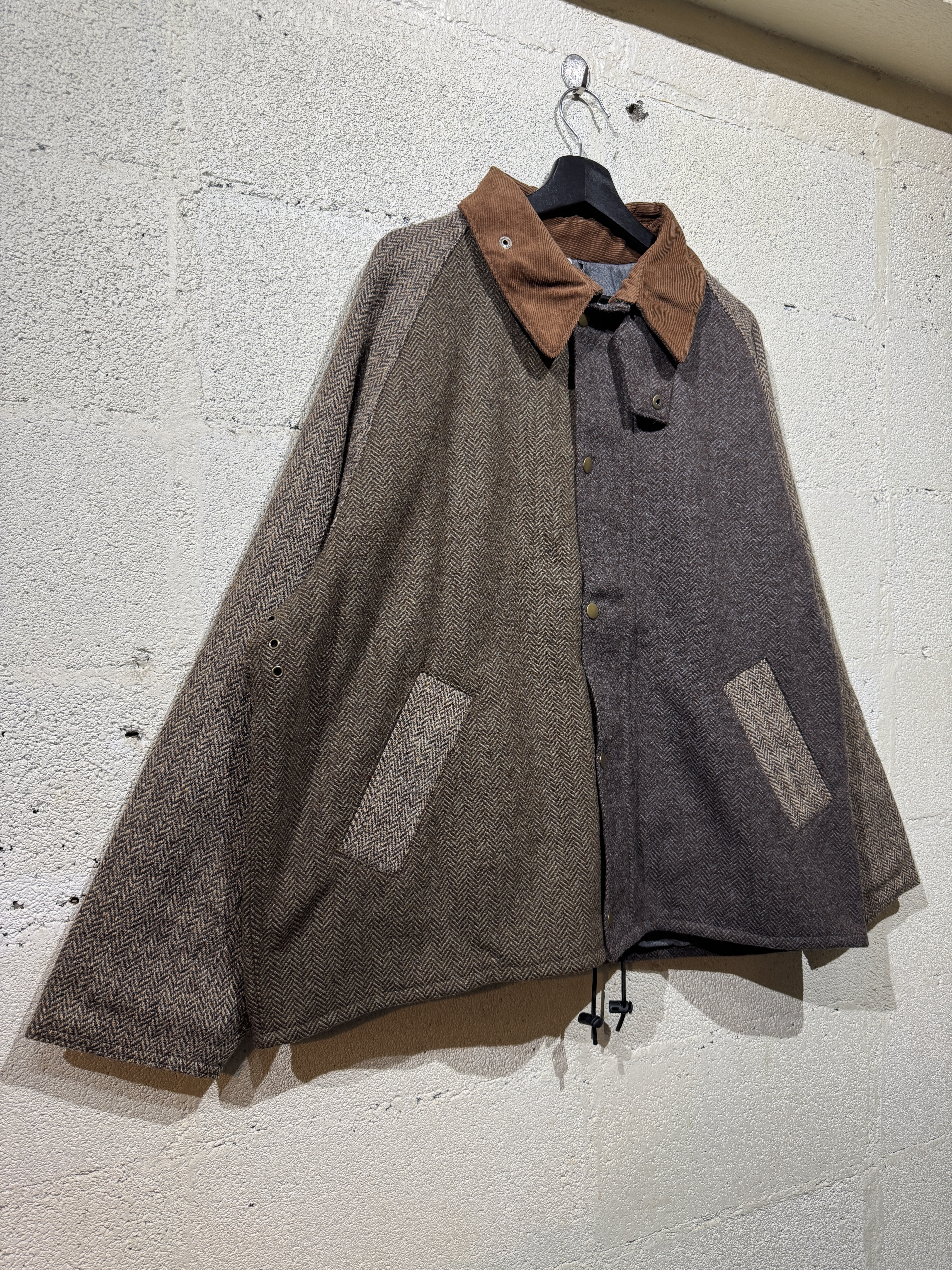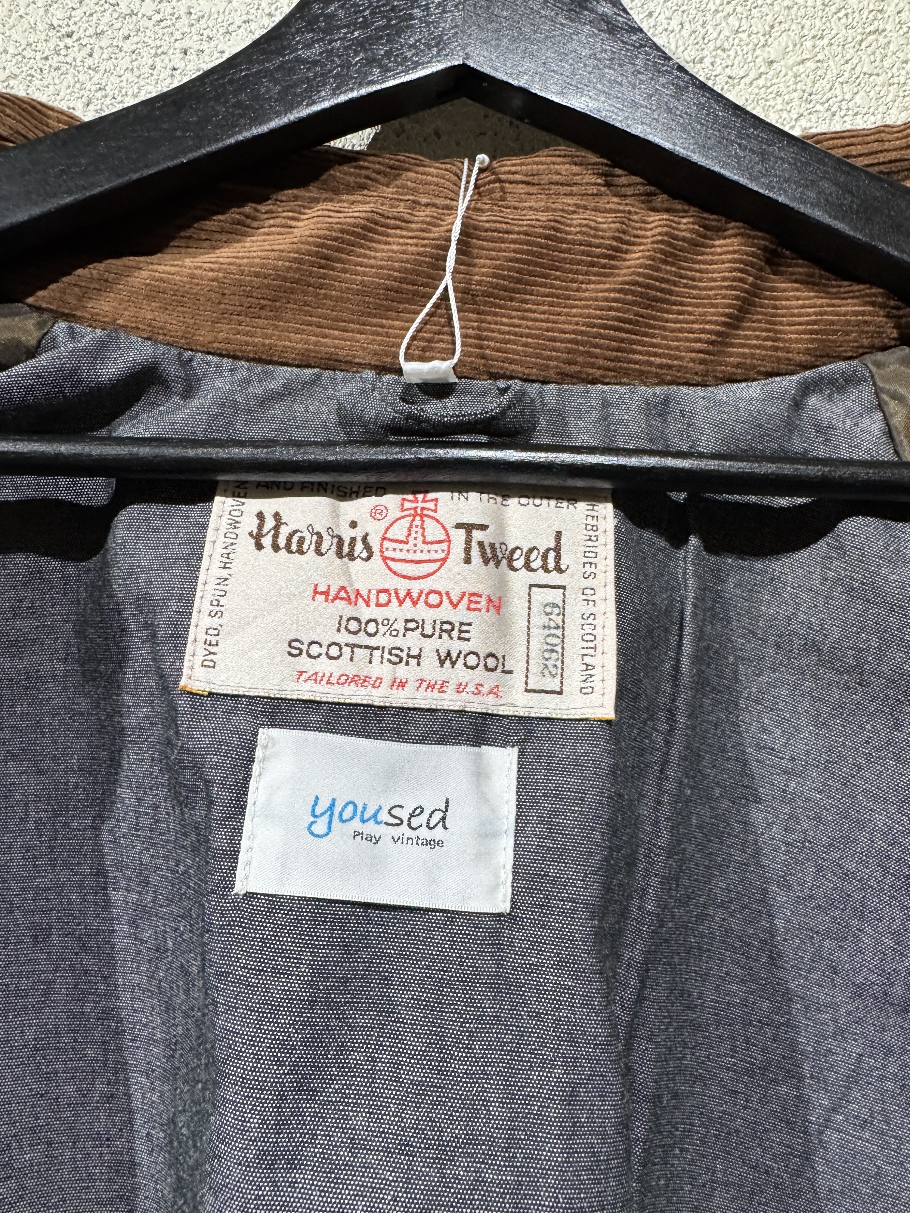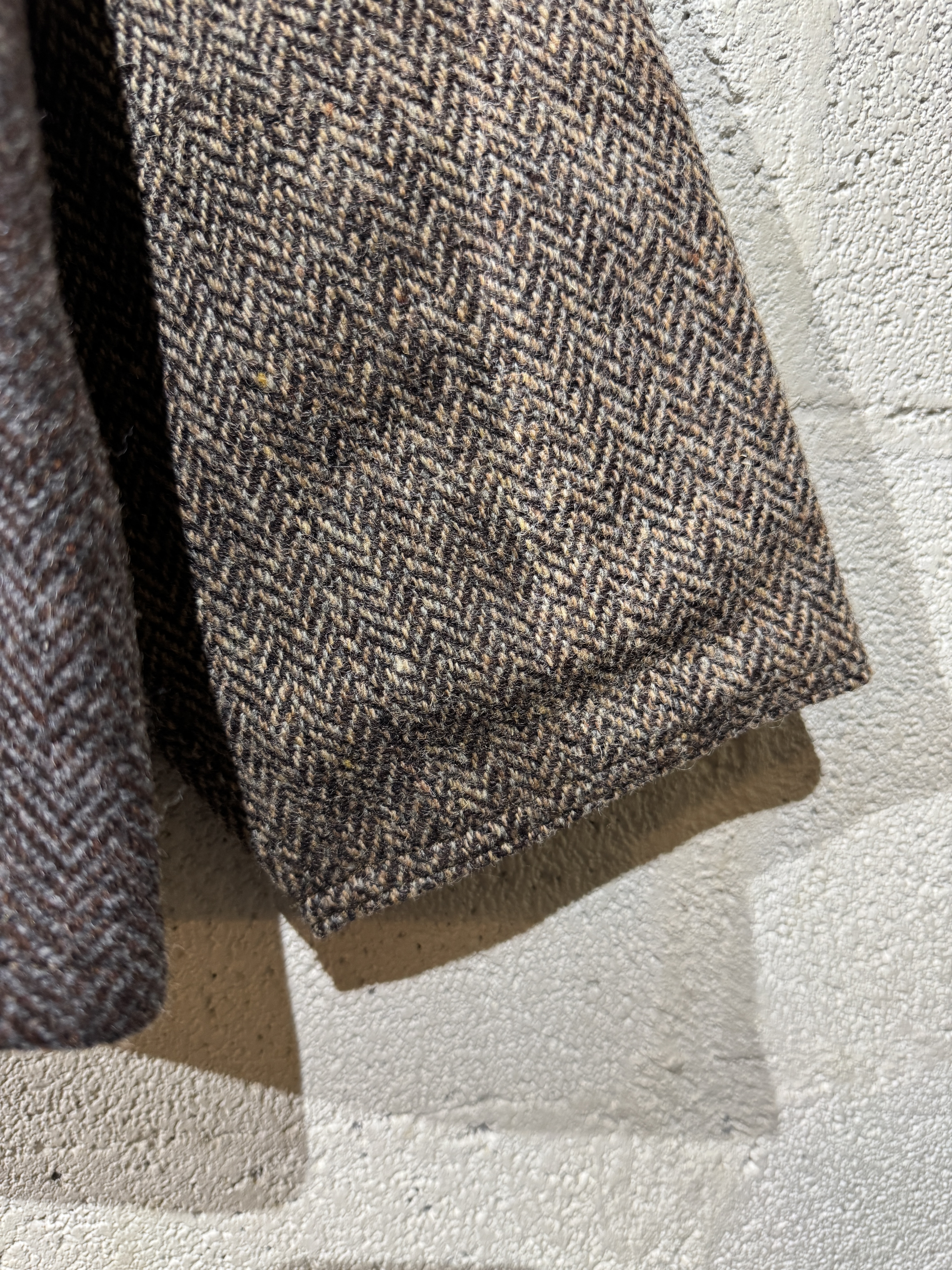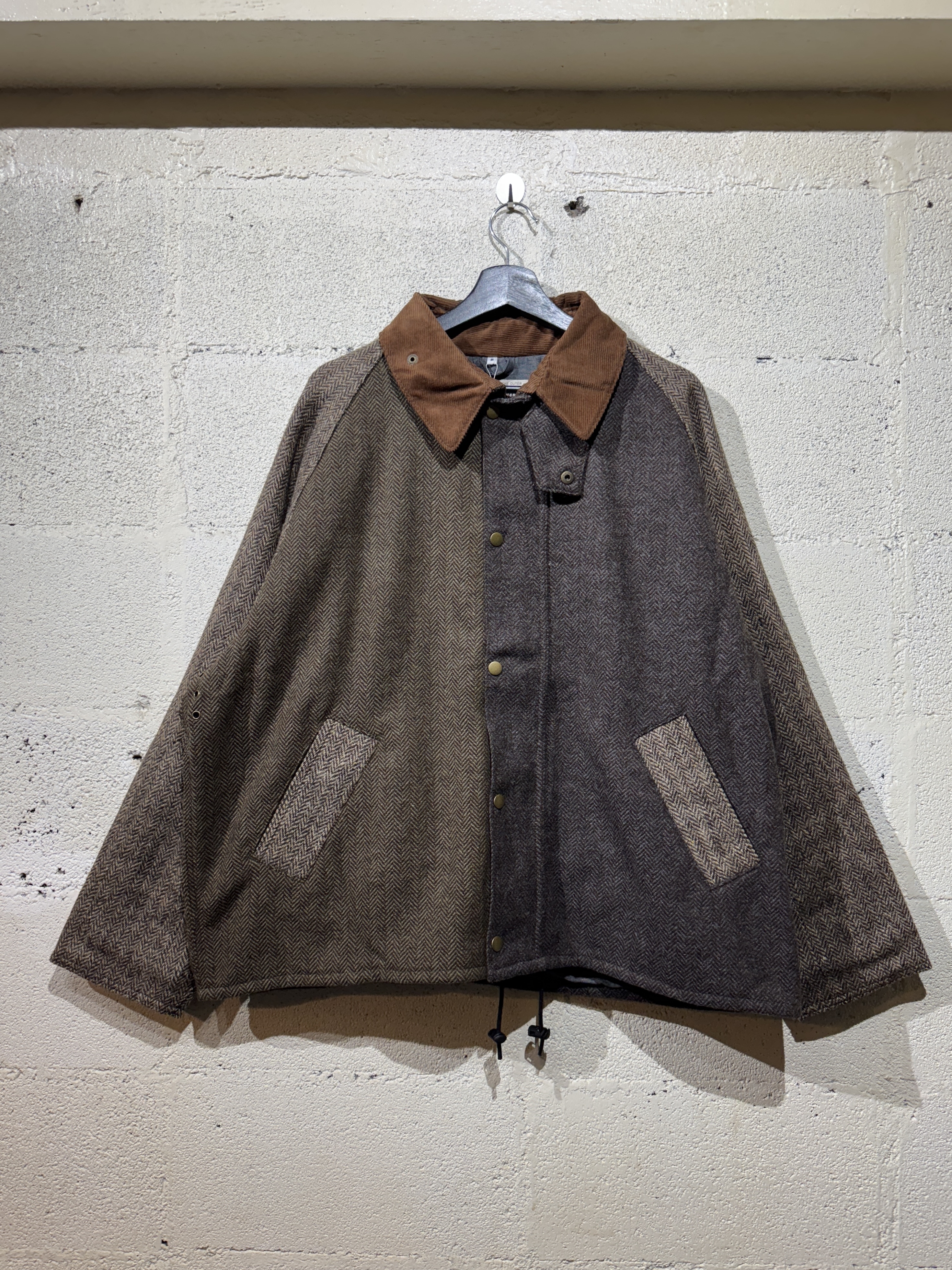 Hariss tweed drivers jacket ビンテージのハリスツイードジャケットを解体しドライバーズジャケットに再構築しました。 シルエット、サイズ感はyousedレザードライバーズジャケットと同じです。 ややゆったりとしたコーチジャケットタイプで合わせやすいデザインです。 カラーは大まかにブラウン系とグレー系の2種類、襟のコーデュロイもボディカラーに合わせてあります。 尚、ビンテージのハリスツイードを使用してますので全て1点ものとなり個性を大切にしたyousedらしいデザインです。 サイズは1、2の2サイズ展開です。 当商品のカラーはブラウン系です。 着画は170cm.60kgのものがサイズ1を着用しています。 詳細寸法 サイズ:2 着丈:70cm 身幅:70cm 裄丈:89cm