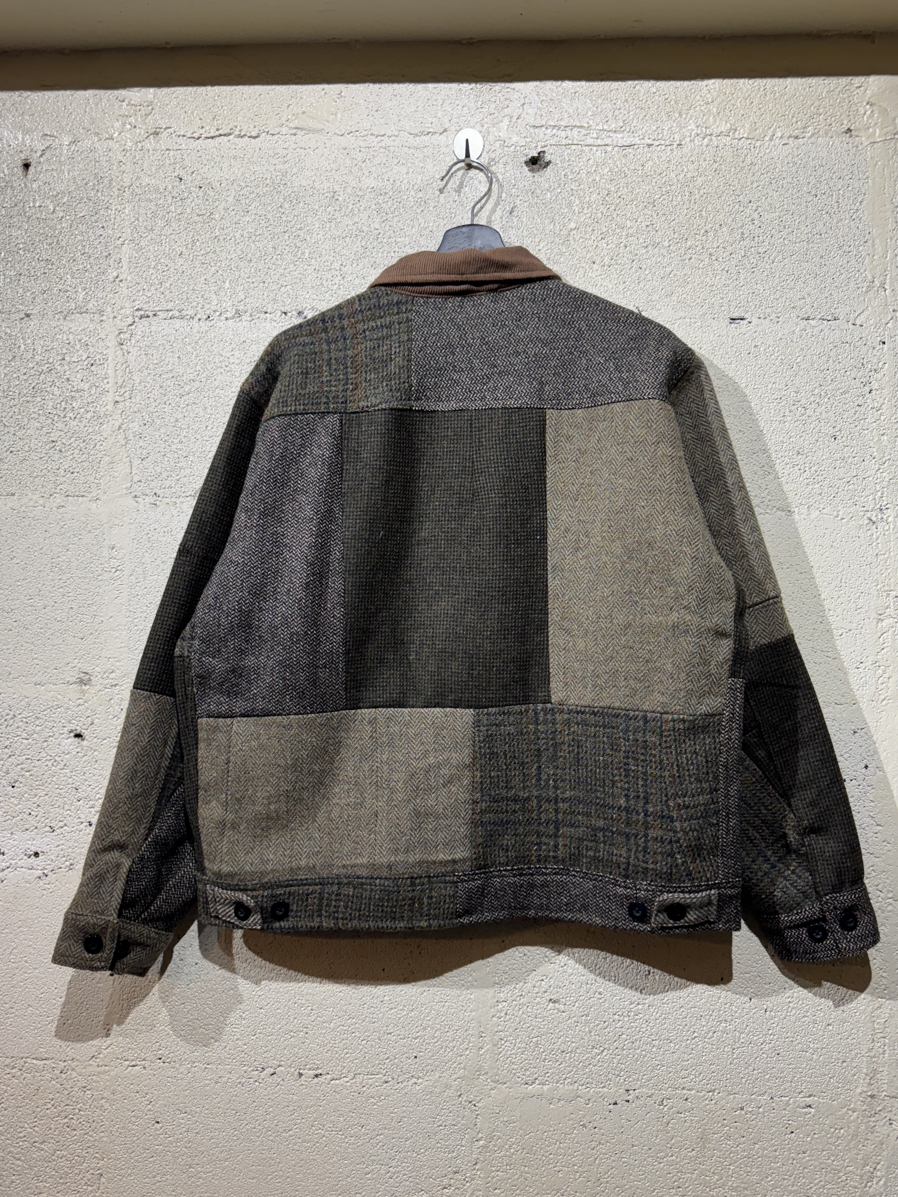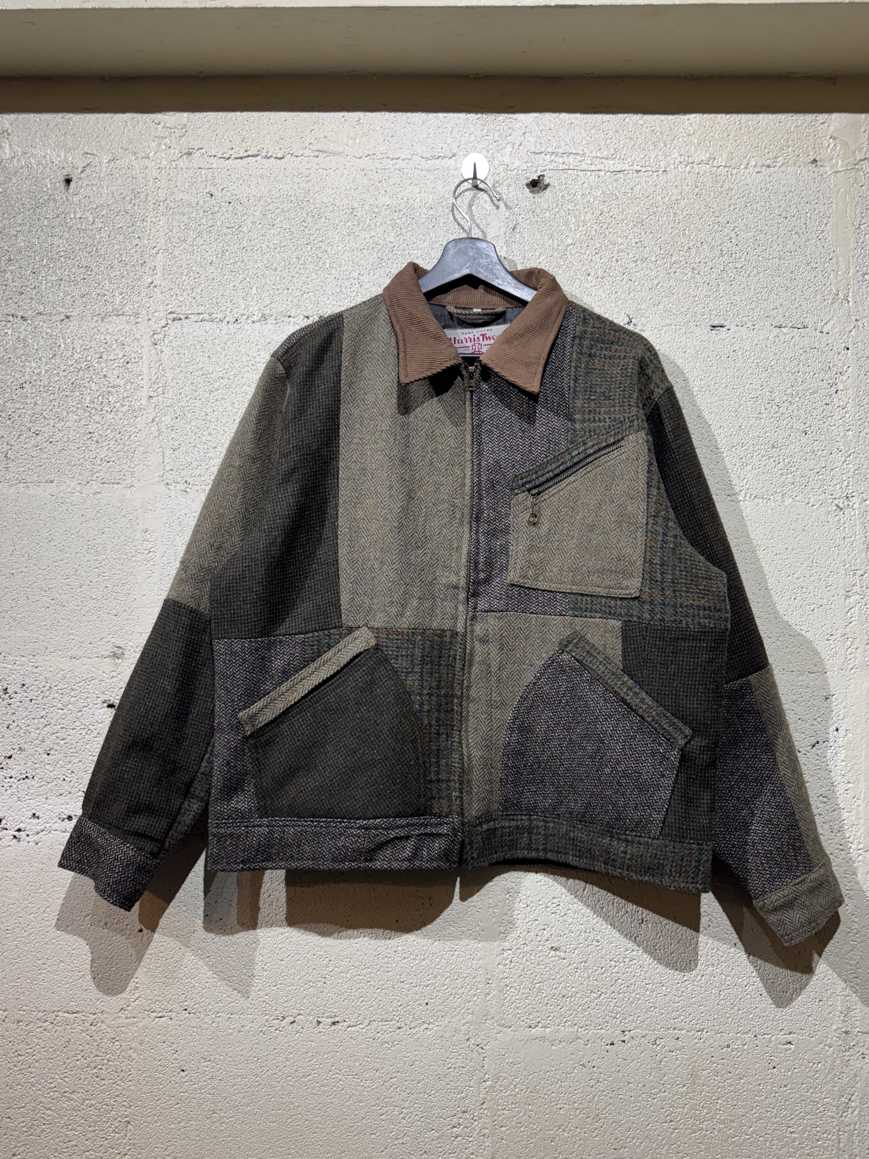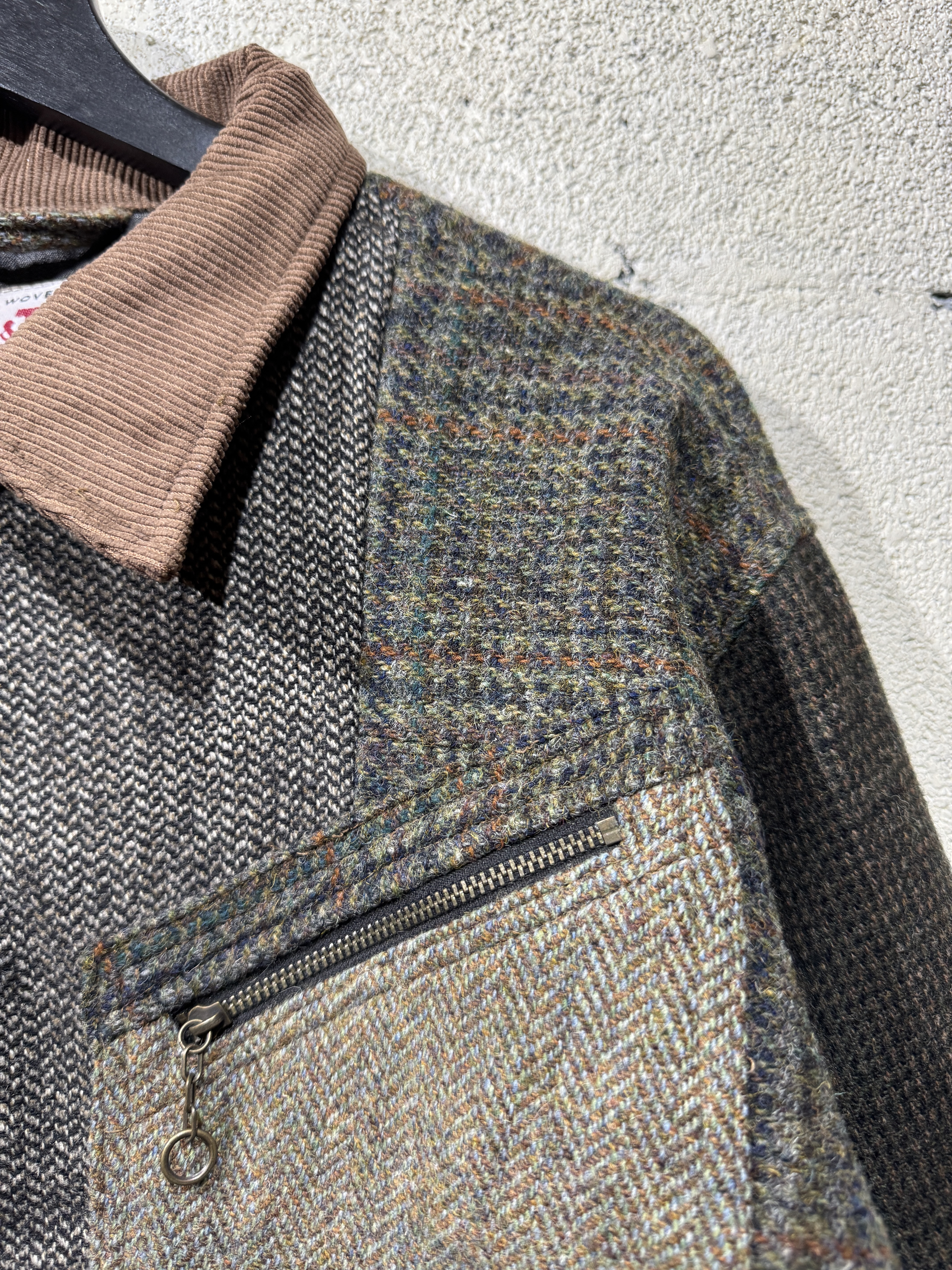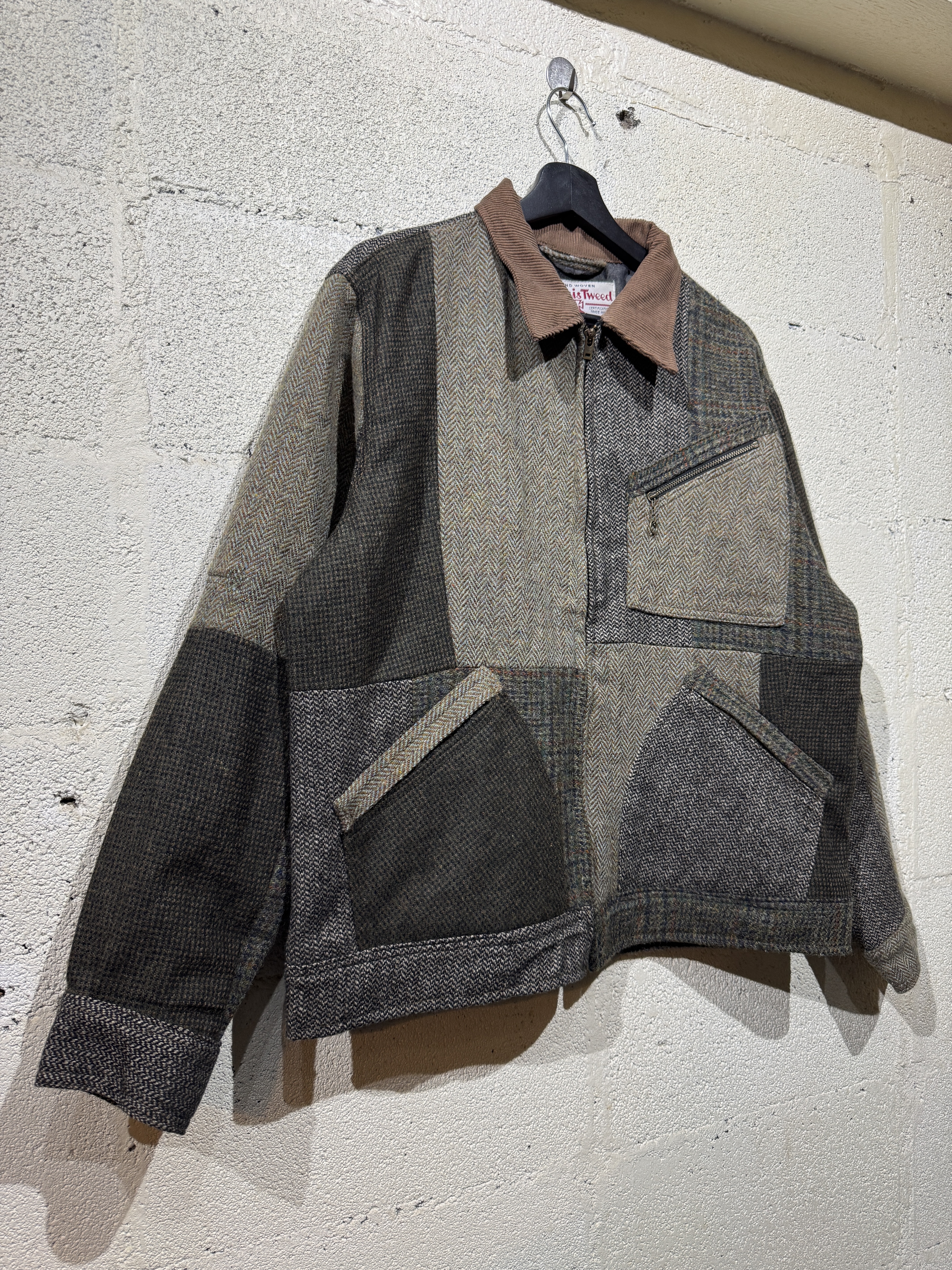 Harris Tweed Sports jacket(91B) レザーで好評の91Bタイプのスポーツジャケットをハリスツイードにて作りました。ハリスツイードは70〜90年代のクラシカルなビンテージをピックし、細かなパーツに分けて再構築してあります。襟はコーデュロイ仕様、ビンテージの91Bよりもやや小ぶりに作ってあります。裏地はシャンブレー生地、また特徴的な胸の斜めポケットのジッパーには91Bのアイコンであるリングトップを付属してます。シルエットはショート丈の太すぎず細すぎずのスポーティーなシルエット。またツイードはレザーに比べ軽いのでストレスを感じさせません。1929年にLeeが発売して約100年。スタイルの変更がほぼ無い完成されたモデルで流行に左右されることなく長くご愛用頂けること間違いありません。カラーはグレー系、ブラウン系の2種、一つ一つ違いますので写真でご確認ください。またサイズは0.1.2の3サイズ、着画は170cm.60kgのものがニットの上から「1」を着用しています。 詳細寸法 サイズ1 身幅:62cm 袖丈:59cm 肩幅:49cm 着丈:65cm