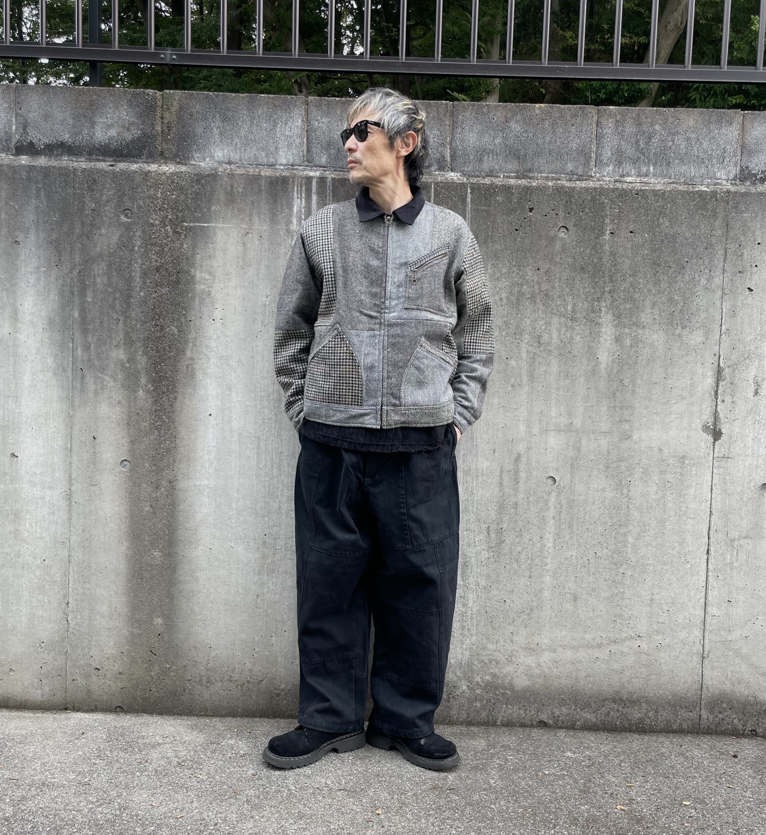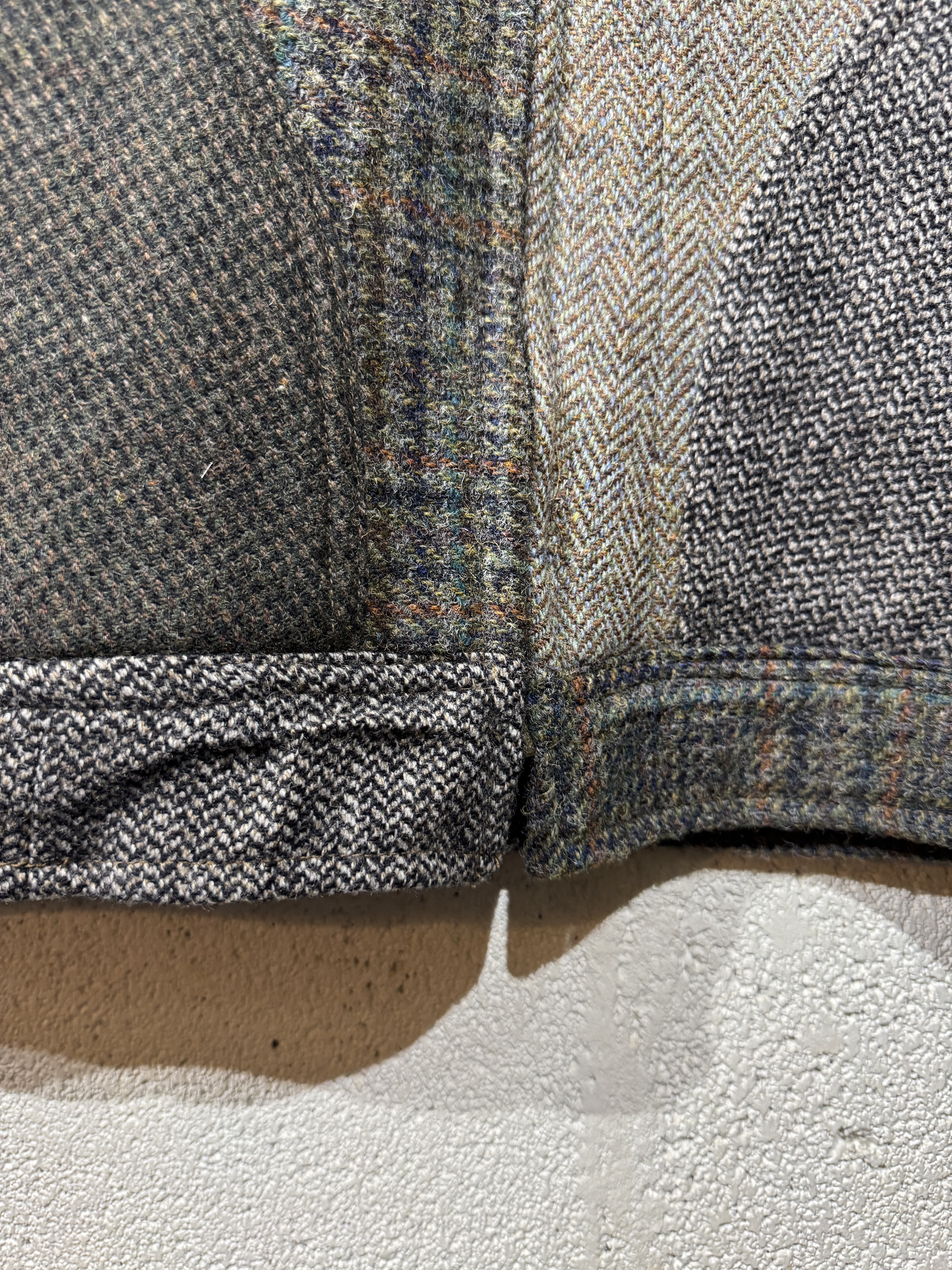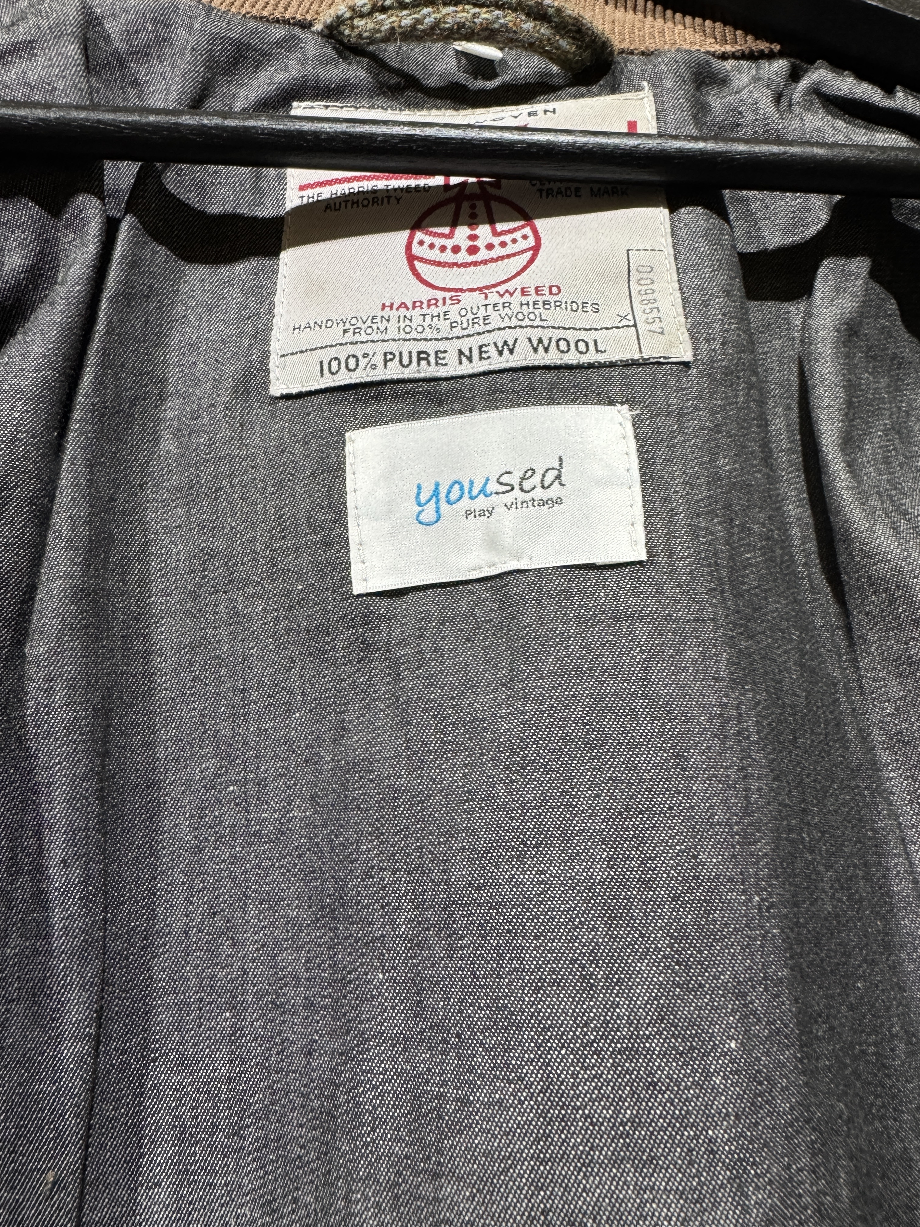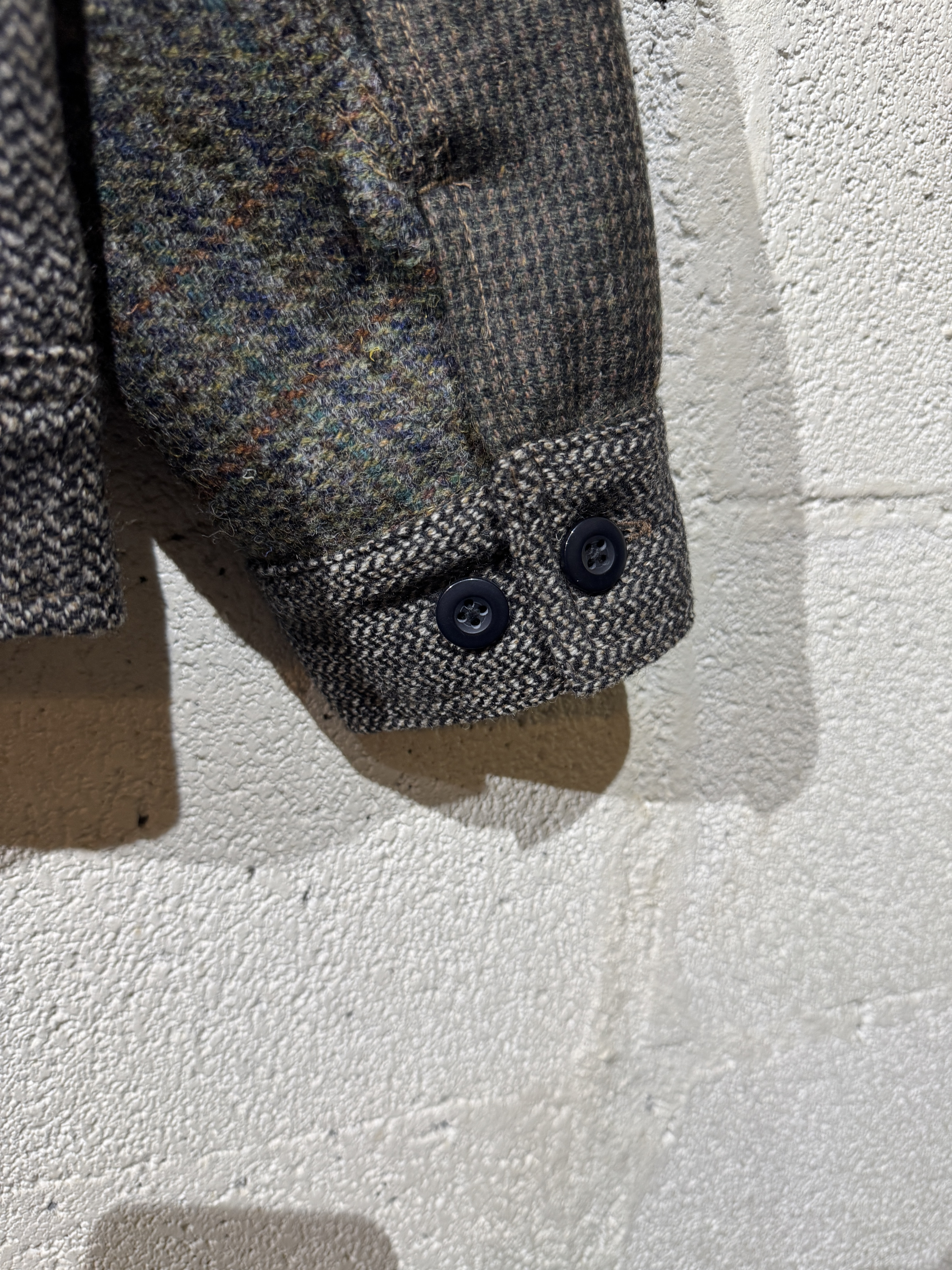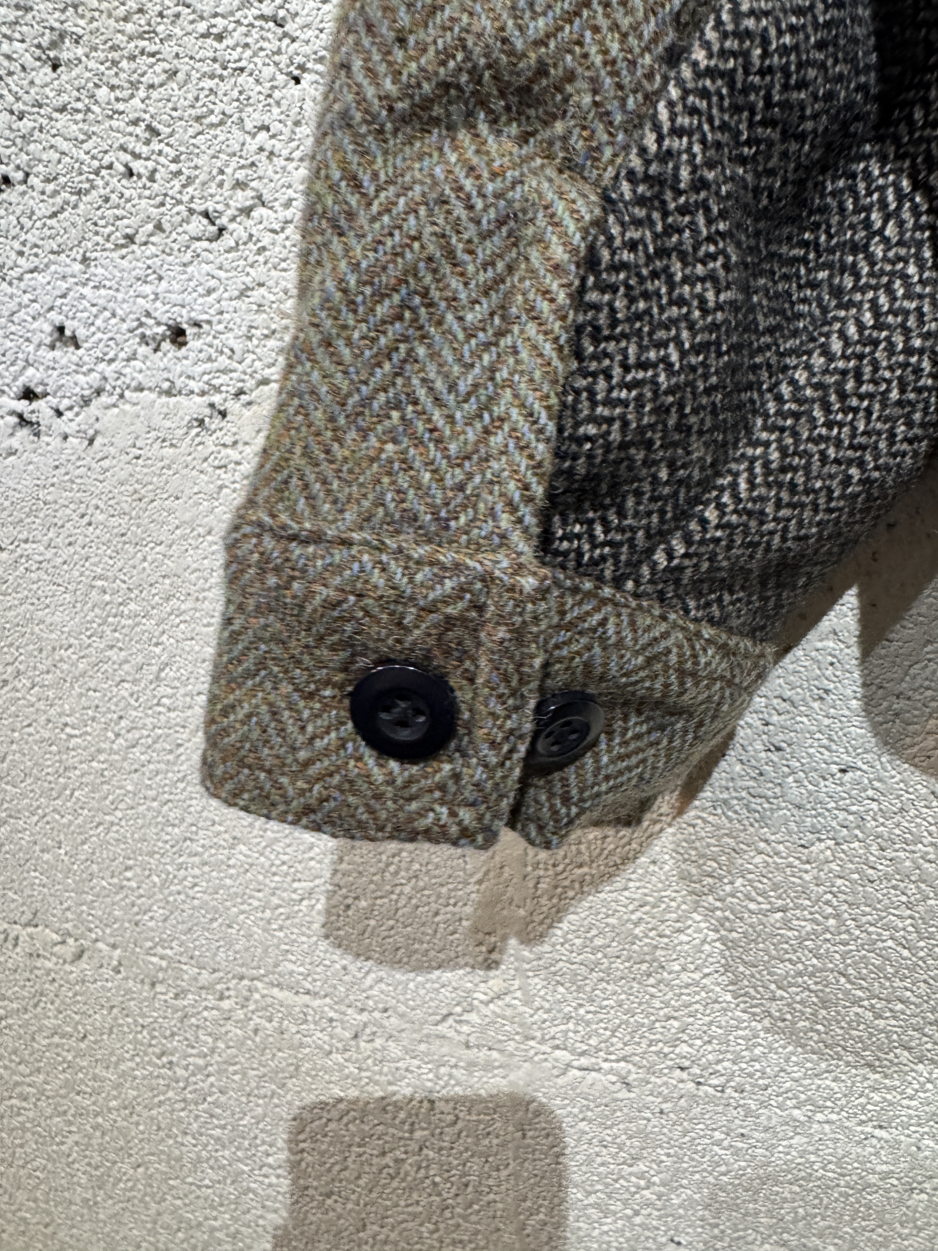 Harris Tweed Sports jacket(91B) レザーで好評の91Bタイプのスポーツジャケットをハリスツイードにて作りました。ハリスツイードは70〜90年代のクラシカルなビンテージをピックし、細かなパーツに分けて再構築してあります。襟はコーデュロイ仕様、ビンテージの91Bよりもやや小ぶりに作ってあります。裏地はシャンブレー生地、また特徴的な胸の斜めポケットのジッパーには91Bのアイコンであるリングトップを付属してます。シルエットはショート丈の太すぎず細すぎずのスポーティーなシルエット。またツイードはレザーに比べ軽いのでストレスを感じさせません。1929年にLeeが発売して約100年。スタイルの変更がほぼ無い完成されたモデルで流行に左右されることなく長くご愛用頂けること間違いありません。カラーはグレー系、ブラウン系の2種、一つ一つ違いますので写真でご確認ください。またサイズは0.1.2の3サイズ、着画は170cm.60kgのものがニットの上から「1」を着用しています。 詳細寸法 サイズ1 身幅:62cm 袖丈:59cm 肩幅:49cm 着丈:65cm