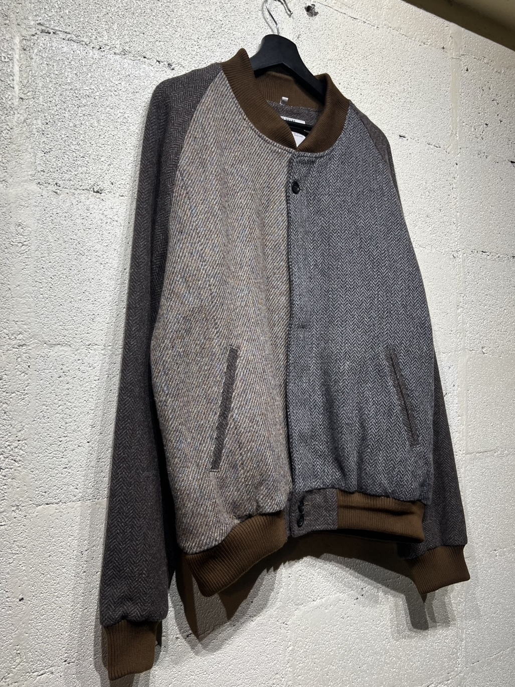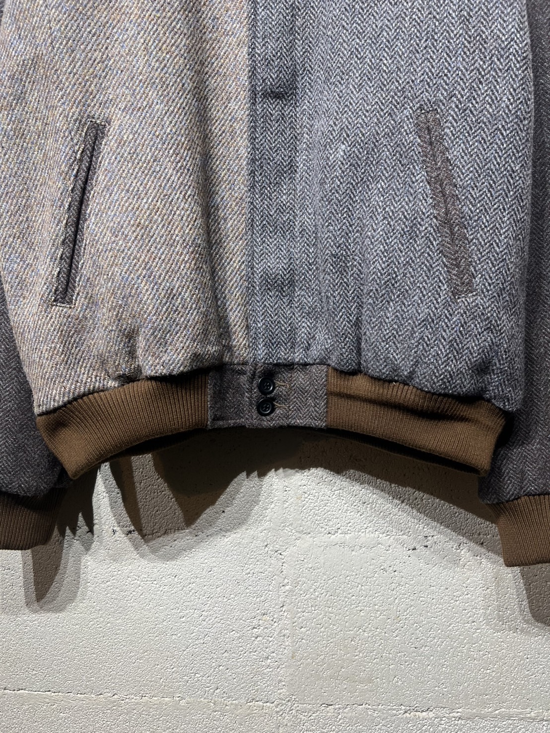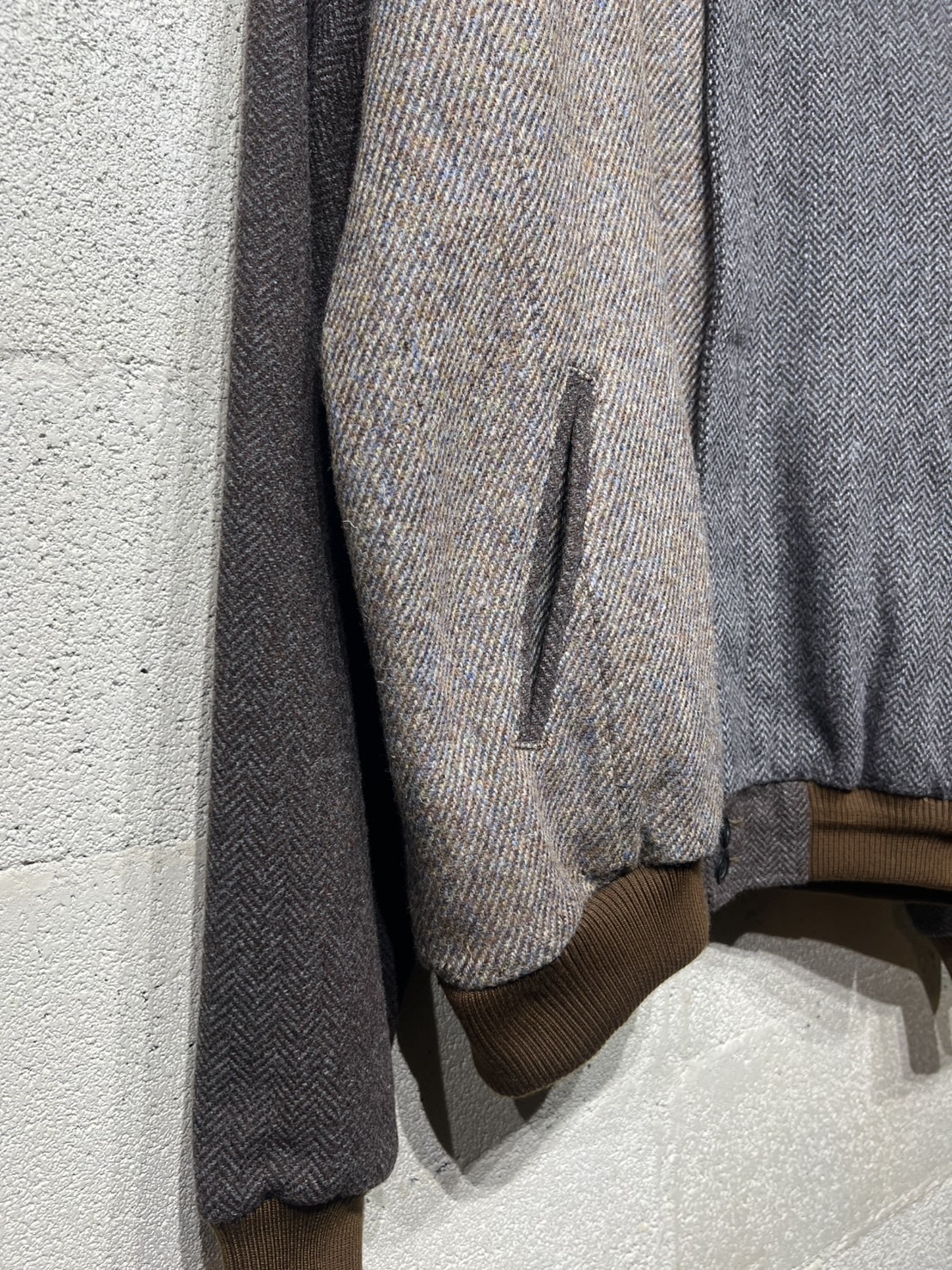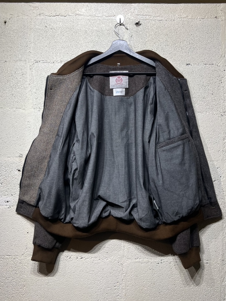 古着のハリスツイードを解体し再構築したダービージャケットです。ダービージャケットは1960〜80年代にアメリカの西海岸のスケーターなどに愛されたストリートファッションのアウターでラグランスリーブの作り、またショート丈のリブ仕様が特徴です。yousedではこのダービージャケットをハリスツイード生地を用いて再構築しました。ストリートなシルエットにブリティッシュな雰囲気を加え大人のカジュアルを演出してくれます。尚、古着のハリスツイードを使用してますので柄や組み合わせの同じものが存在しない「個性」を大切にしたリメイクウェアとなっています 詳細寸法 身幅:63cm ゆき丈:94cm 着丈:66cm