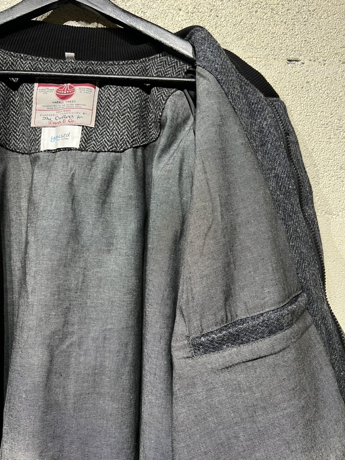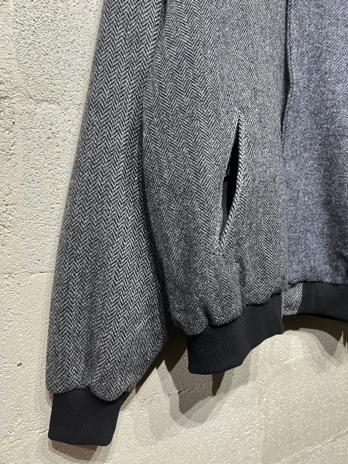 古着のハリスツイードを解体し再構築したダービージャケットです。ダービージャケットは1960〜80年代にアメリカの西海岸のスケーターなどに愛されたストリートファッションのアウターでラグランスリーブの作り、またショート丈のリブ仕様が特徴です。yousedではこのダービージャケットをハリスツイード生地を用いて再構築しました。ストリートなシルエットにブリティッシュな雰囲気を加え大人のカジュアルを演出してくれます。尚、古着のハリスツイードを使用してますので柄や組み合わせの同じものが存在しない「個性」を大切にしたリメイクウェアとなっています 詳細寸法 身幅:66cm ゆき丈:95cm 着丈:69cm