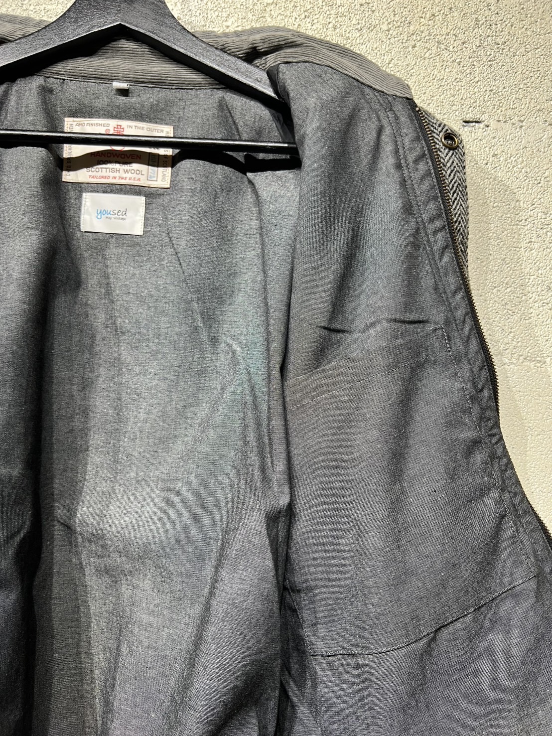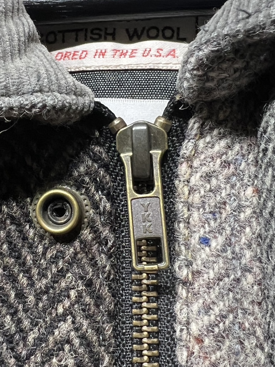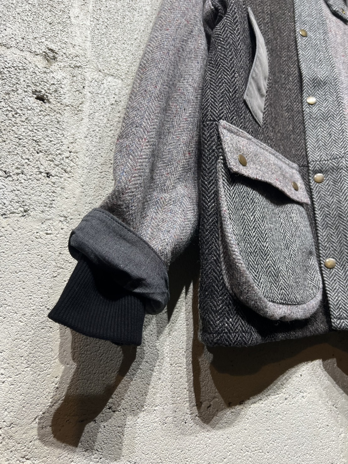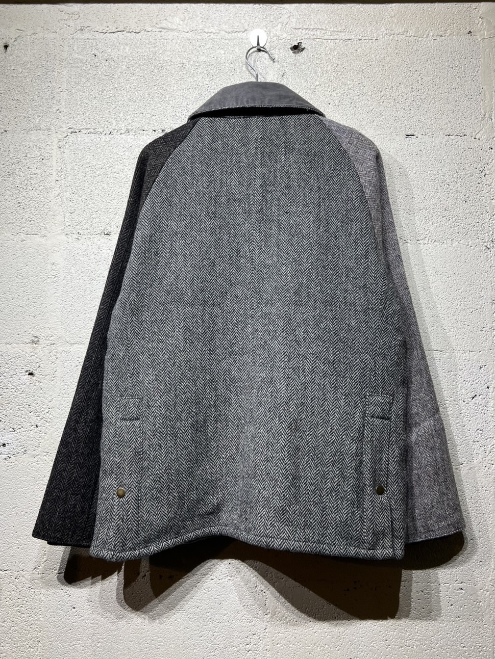 Harris Tweed Country Jacket YOUSED(ユーズド)が手がける、Harris Tweedを使用したカントリージャケット。 スコットランドの伝統素材であるHarris Tweedのヴィンテージウェアを一度解体し、パターンから再構築することで生まれた一着です。 Harris Tweedは、ヴァージンウールを使用し、島内で染色・紡績、職人の自宅で手織りされた生地のみが名乗ることを許された、長い歴史を持つ英国素材。 厳格な基準をクリアしたものだけが正式に認定され、その品質は世界的にも評価されています。 本作では、そのHarris Tweedを細かく分解し、同系色でまとめたクレイジーパターンとして再構築。 パッチワークならではの奥行きある表情と、温かみのあるカラーリングが印象的です。 ラグランスリーブやハンドウォームポケット、マチ付きフラップポケット、チンストラップ付きコーデュロイ襟など、クラシカルなディテールを踏襲。 身頃裏にはシャンブレー、袖裏にはポリエステルを使用し、着用感にも配慮しています。 すべてが一点モノとなる、YOUSEDならではの特別なプロダクトです。 ◯商品詳細 サイズ:2 COLOR:GRAY 詳細寸法 身幅:57cm 着丈:73cm 裄丈:89cm
