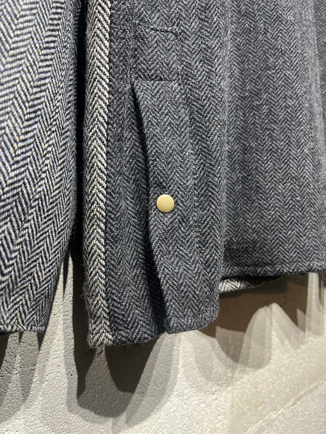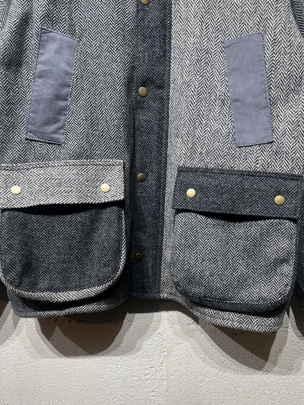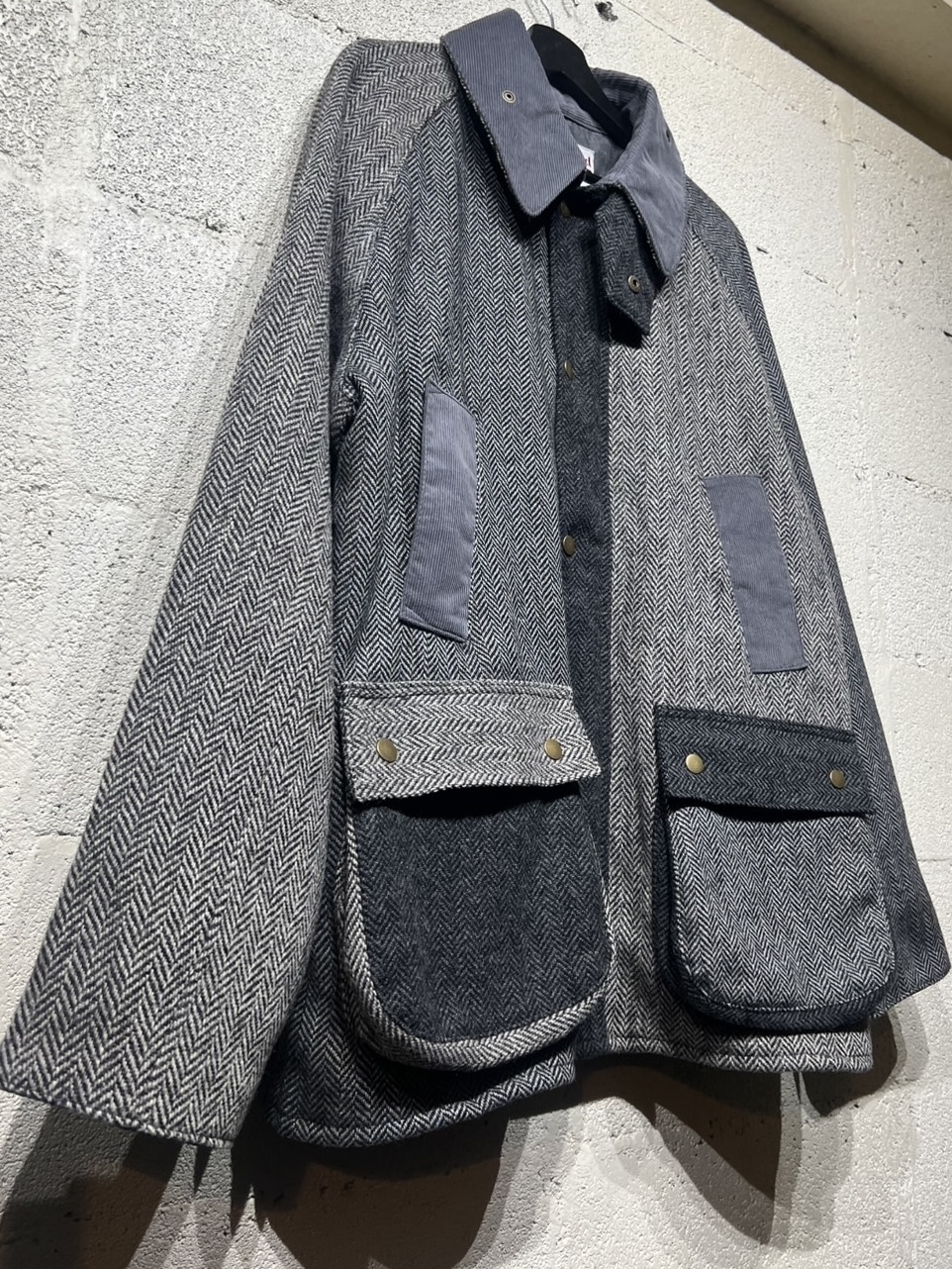 Harris Tweed Country Jacket YOUSED(ユーズド)が手がける、Harris Tweedを使用したカントリージャケット。 スコットランドの伝統素材であるHarris Tweedのヴィンテージウェアを一度解体し、パターンから再構築することで生まれた一着です。 Harris Tweedは、ヴァージンウールを使用し、島内で染色・紡績、職人の自宅で手織りされた生地のみが名乗ることを許された、長い歴史を持つ英国素材。 厳格な基準をクリアしたものだけが正式に認定され、その品質は世界的にも評価されています。 本作では、そのHarris Tweedを細かく分解し、同系色でまとめたクレイジーパターンとして再構築。 パッチワークならではの奥行きある表情と、温かみのあるカラーリングが印象的です。 ラグランスリーブやハンドウォームポケット、マチ付きフラップポケット、チンストラップ付きコーデュロイ襟など、クラシカルなディテールを踏襲。 身頃裏にはシャンブレー、袖裏にはポリエステルを使用し、着用感にも配慮しています。 すべてが一点モノとなる、YOUSEDならではの特別なプロダクトです。 ◯商品詳細 サイズ:3 COLOR:GRAY 詳細寸法 身幅:63cm 着丈:75cm 裄丈:91cm