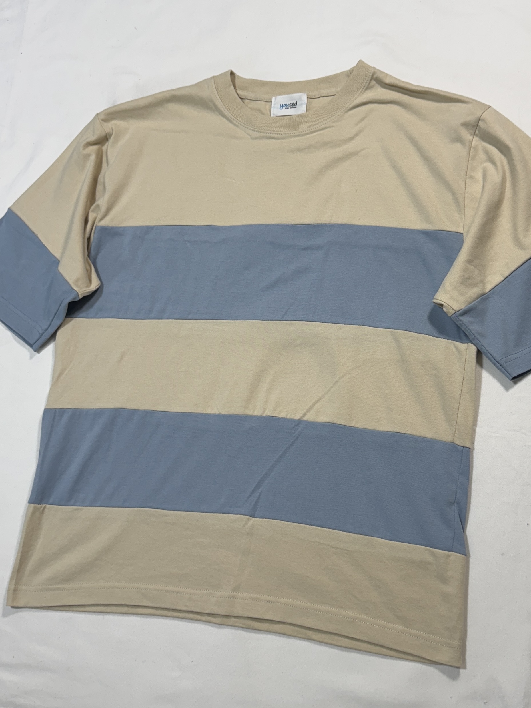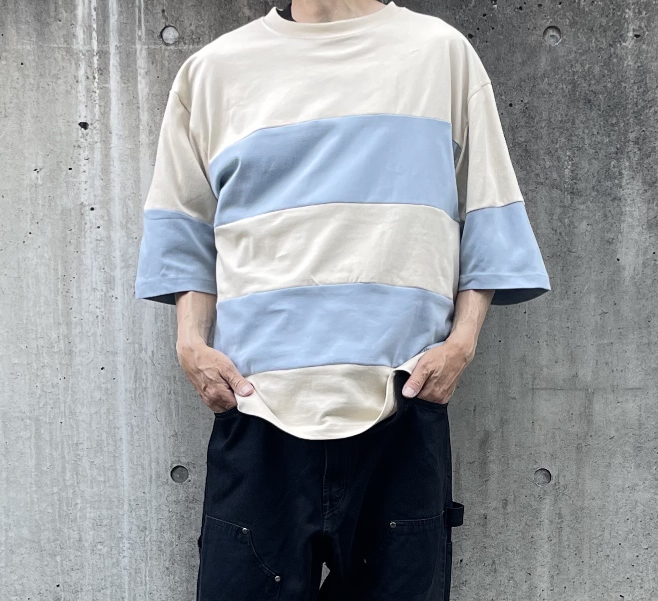 Remake Paneling Border Tee 「one size」Beige × Sax rt3