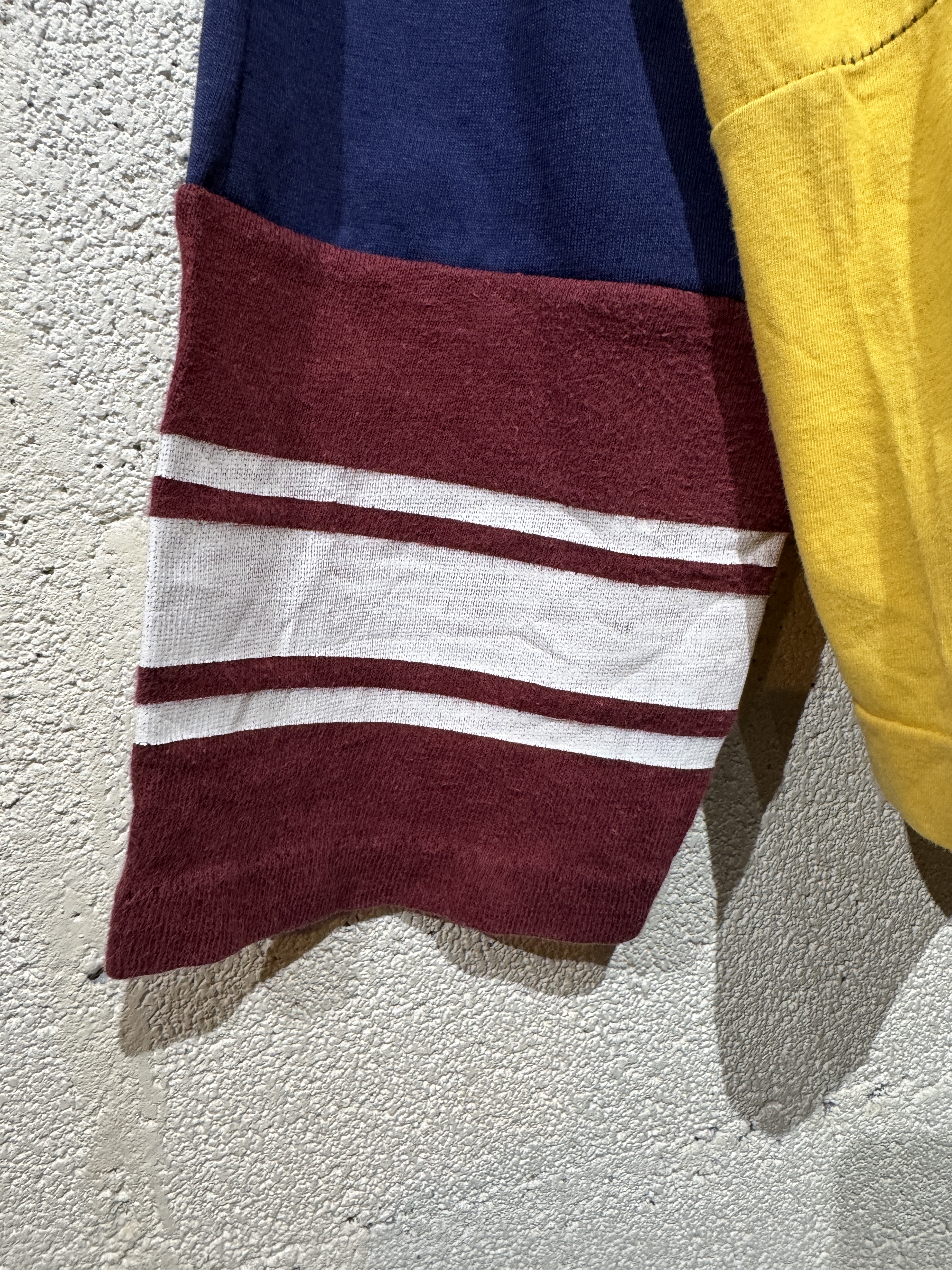 《yoused play vintage longsleeve tee 》 70s〜90sの希少なビンテージ Tを使用したリメイクロン Tです。 また袖やパッチワークパーツも90年代を中心に古いものを使用してあります。またオリジナルボディ、プリントの良さを最大限に活かしたいのでパターンも作らす1枚1枚考え抜いて色味などを合わせて作成しています。 サイズはフリーサイズですが概ねL相当で作ってあります。170cm.60kgのものが着用してゆったり着れるサイズ感です。 詳細寸法も記載してますのでご確認ください。 トップスとしてはもちろん、レザージャケットの中に着るなどインナーとしても存在感のある1枚です。同じものは存在しない、まさに一点ものの1枚です。 ぜひご検討ください。 詳細寸法 size:free 身幅:66cm 袖丈:54cm 肩幅:65cm 着丈:62cm