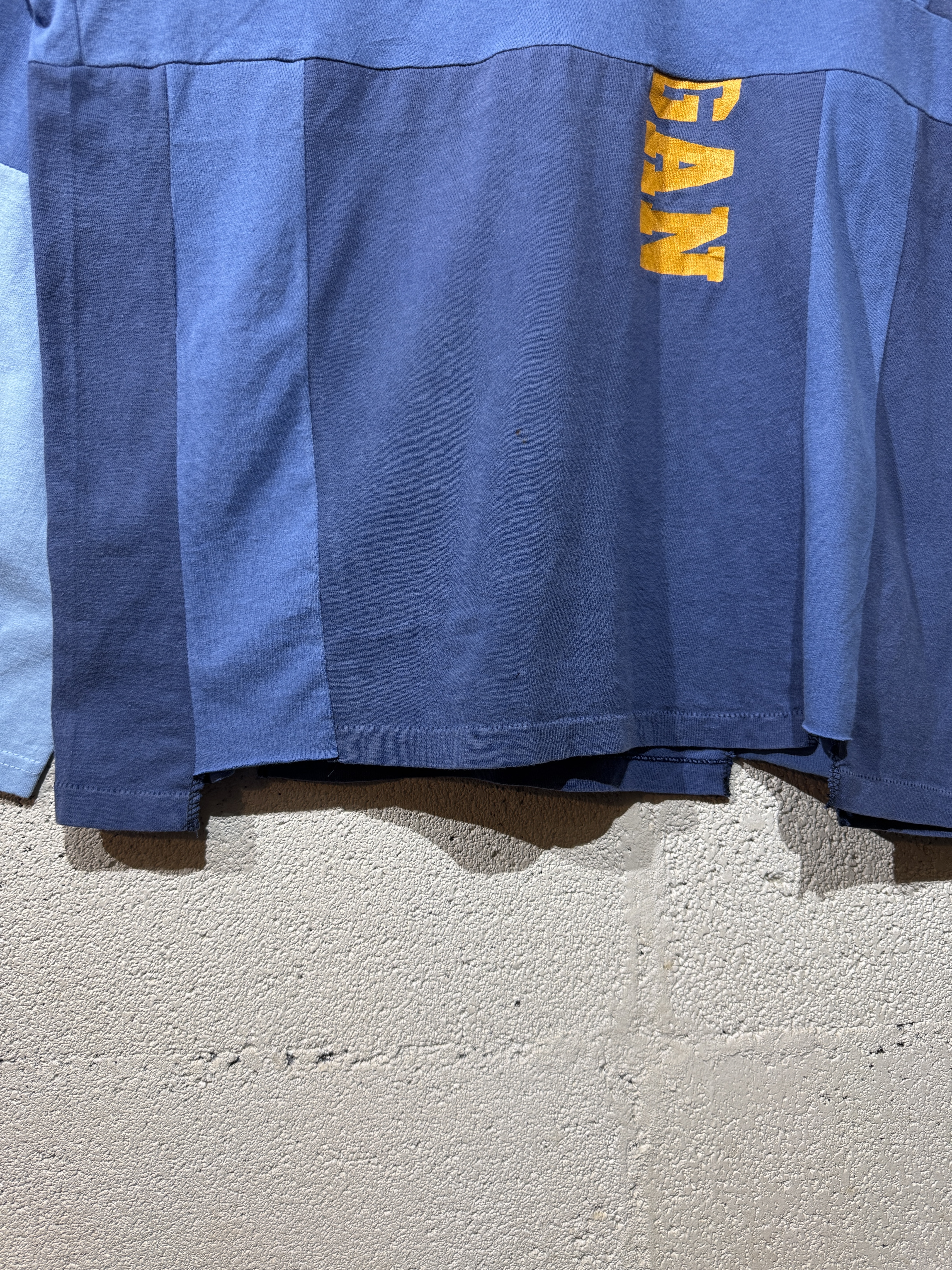 《yoused play vintage longsleeve tee 》 70s〜90sの希少なビンテージ Tを使用したリメイクロン Tです。 また袖やパッチワークパーツも90年代を中心に古いものを使用してあります。またオリジナルボディ、プリントの良さを最大限に活かしたいのでパターンも作らす1枚1枚考え抜いて色味などを合わせて作成しています。 サイズはフリーサイズですが概ねL相当で作ってあります。170cm.60kgのものが着用してゆったり着れるサイズ感です。 詳細寸法も記載してますのでご確認ください。 トップスとしてはもちろん、レザージャケットの中に着るなどインナーとしても存在感のある1枚です。同じものは存在しない、まさに一点ものの1枚です。 ぜひご検討ください。 詳細寸法 size:free 身幅:58cm 袖丈:55cm 肩幅:53cm 着丈:63cm