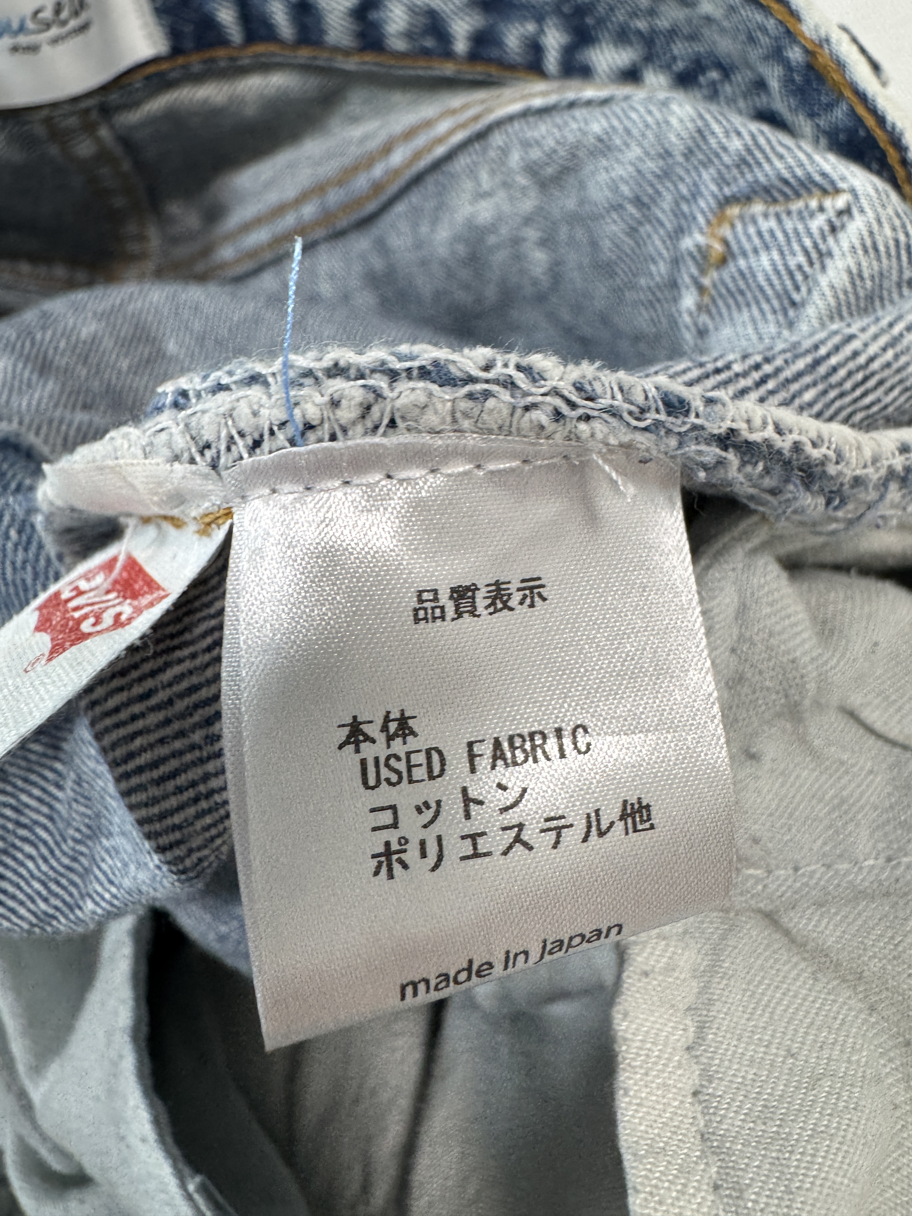 希少な90年代USA製のリーバイス501をベースに、大胆なリペアを施した一本。90年代のグランジシーンを象徴するカート・コバーンのスタイルをイメージし、薄めのインディゴやケミカルブリーチ系の色味をセレクトしました。 ダメージ箇所には、タタキと呼ばれるミシンを200回以上折り返して縫う技法を使用。現在ではコストがかかりすぎて再現が難しい、非常に手の込んだスペシャルなリペアです。 今後ますます希少価値の高まるUSA製リーバイス501。 この特別なリメイクデニムを、ぜひお試しください。 ◾️詳細情報 ・ブランド:Levi’s(リーバイス) ・モデル:501(USA製) ・年代:1990年代 ・カラー:ライトインディゴ / ケミカルブリーチ ・生産国:USA製 ◾️詳細寸法 実寸上サイズ W29 L28 総丈 :95cm レングス 71cm ワタリ :27cm(股下5センチ箇所から計測) ウエスト :74cm 裾幅 :21cm ※採寸には多少の誤差が生じる場合がございます。