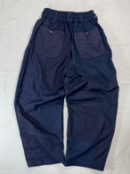 Suits Fabric Wide Easy Pants スーツやジャケット、スラックスなどのドレッシーな素材を解体し、ワイドシルエットのイージーパンツに再構築。滑らかで肌触りの良い素材を厳選しており、オールシーズン快適に着用いただけます。 非常に太めのワタリから緩やかにテーパードがかかったシルエット。見た目のボリュームに反して軽量で、穿き心地にストレスはありません。ウエストはしっかりとした3段ゴム仕様で、体にフィットしながらも緩くなりにくい作りです。ワンタック入りのハイウエスト設計で脚長効果も◎。前後4つのポケット付きで、実用性も兼ね備えています。 サイズはウエストフリーの2サイズ展開(1=M相当、2=L相当)。 カラーはネイビーです。 ※着用画像:170cm/ウエスト80cm・サイズ1の別のもの着用 詳細寸法 サイズ1 ウエスト:FREE SIZE レングス:71cm 総丈:100cm ワタリ:38cm 裾幅:25cm