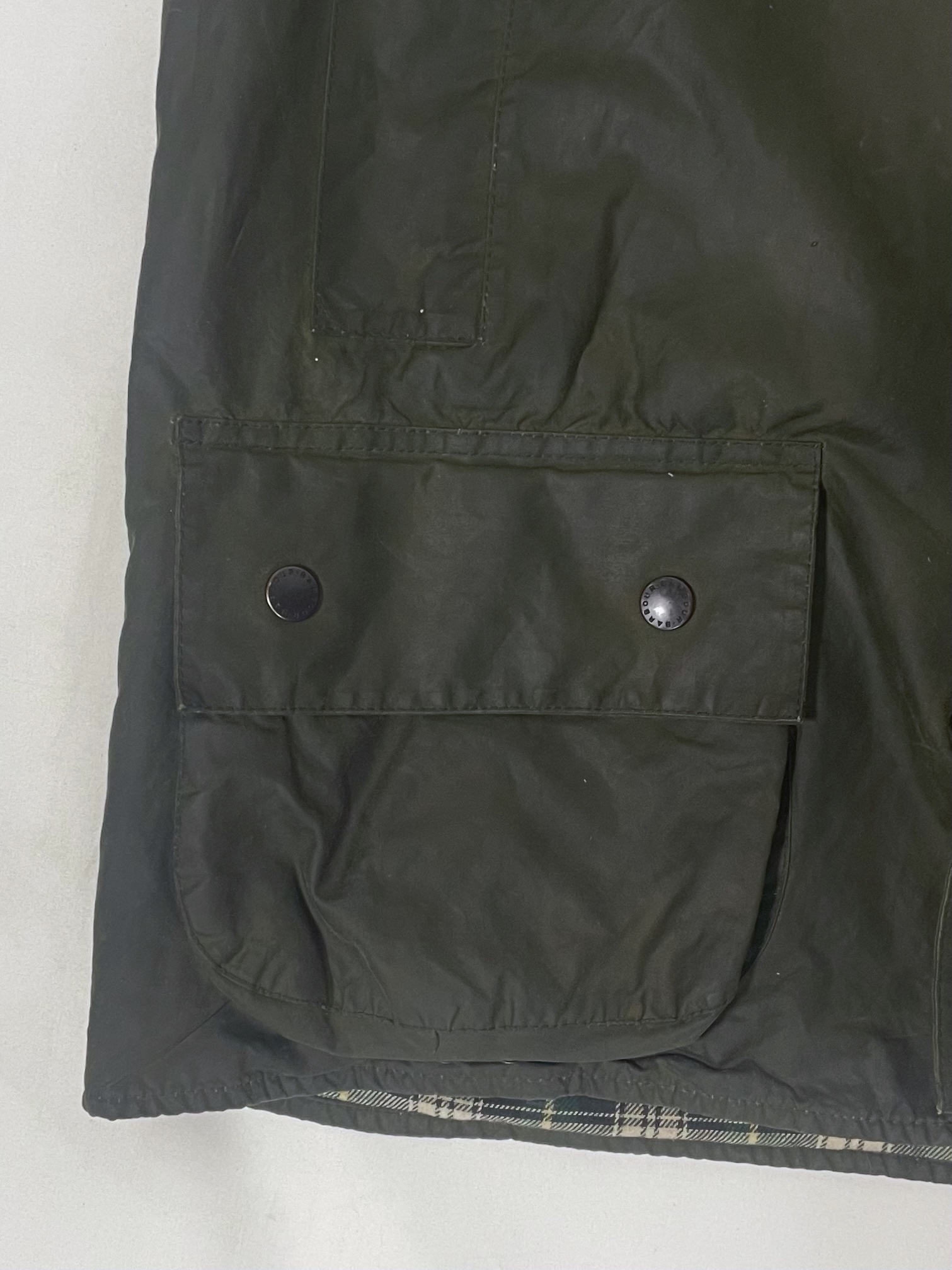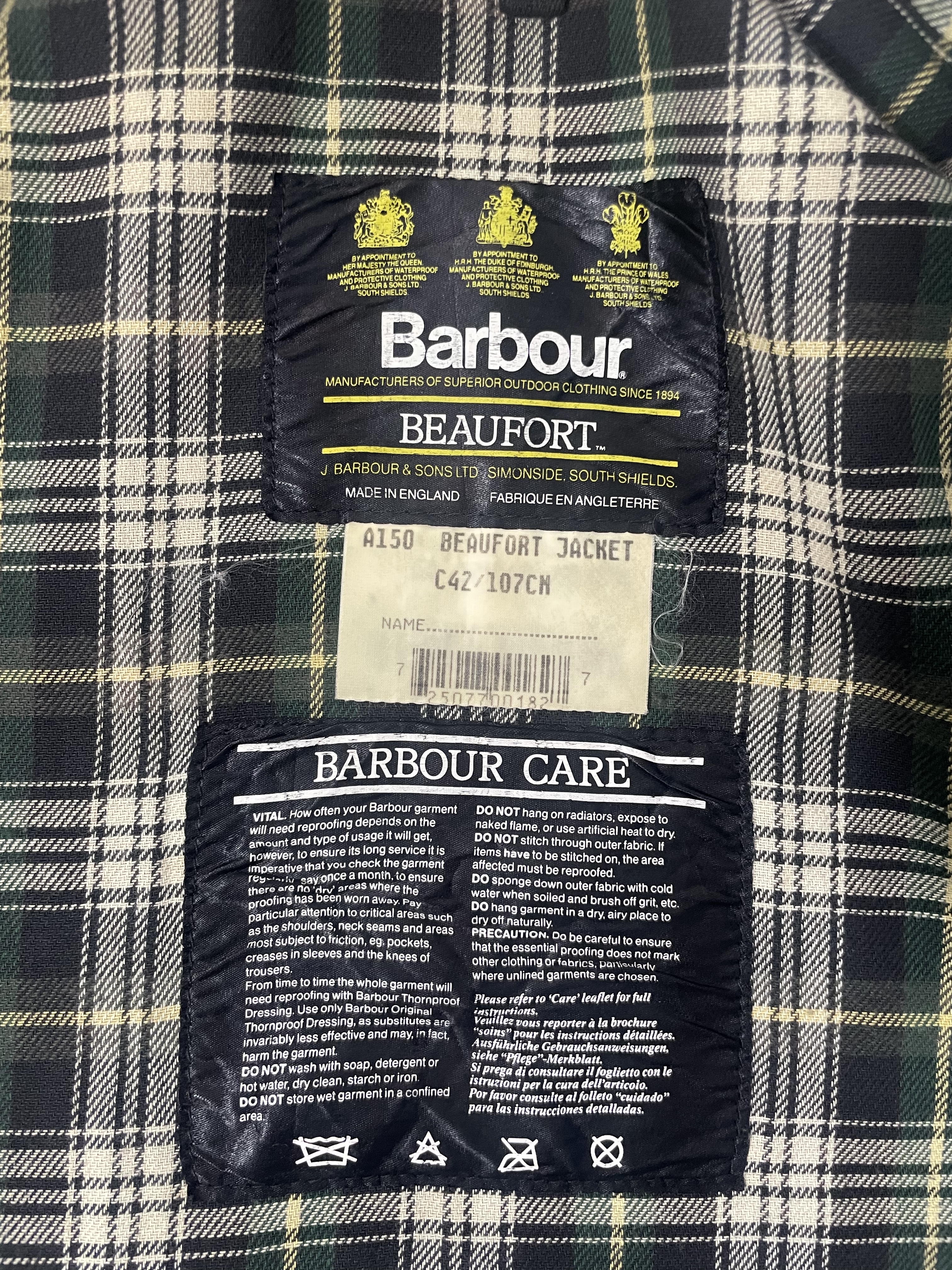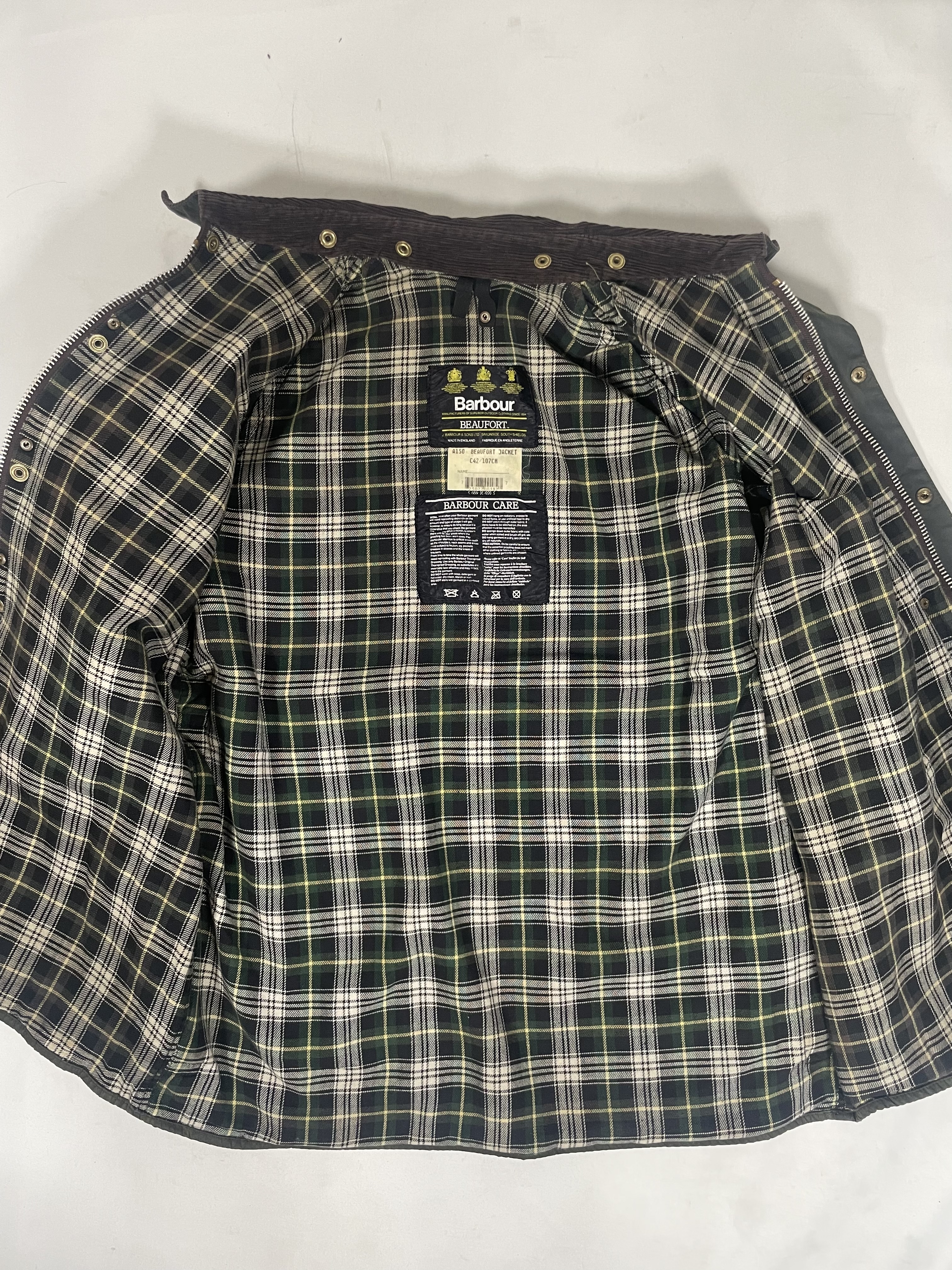 Barbour (Special Condition) モデル:BEAUFORT カラー:セージ(オリーブ) 年代 :1994年 サイズ:42 「ゆき丈:84cm 身幅:63cm 着丈:78cm」 コンディション:目視の限り小穴等ダメージはございません。※光の加減により一部色が変色してしまっているように見えますが、実物はそのような事はございませんのでご安心下さい。また、襟の汚れやボタン、ジッパーなどの機能も問題ありません。袖端、裾端のスレもなく非常に状態の良いビューフォートになります。※ミリ単位のピンホール、小傷等はお許し下さい(目で見つかったものは写真掲載します。) 一年かけて集めたほぼノンダメージのビンテージバブアーです。 実のところ全くダメージの無いバブアーは数十枚に一枚程度しかありません。(それもそのはず、捨てる理由がありませんので。) また、こちらのSpecial Conditionのバブアーは全て洗濯、クリーニング済みです。尚殆どのものがリプルーフを施し長くお使い頂ける様メンテナンスを行い商品化させて頂いてます。※ミリ単位のピンホール、小傷等はお許し下さい(目で見つかったものは写真掲載します。)コンディションの良いビンテージバブアーをお探しの方ぜひご検討下さい。