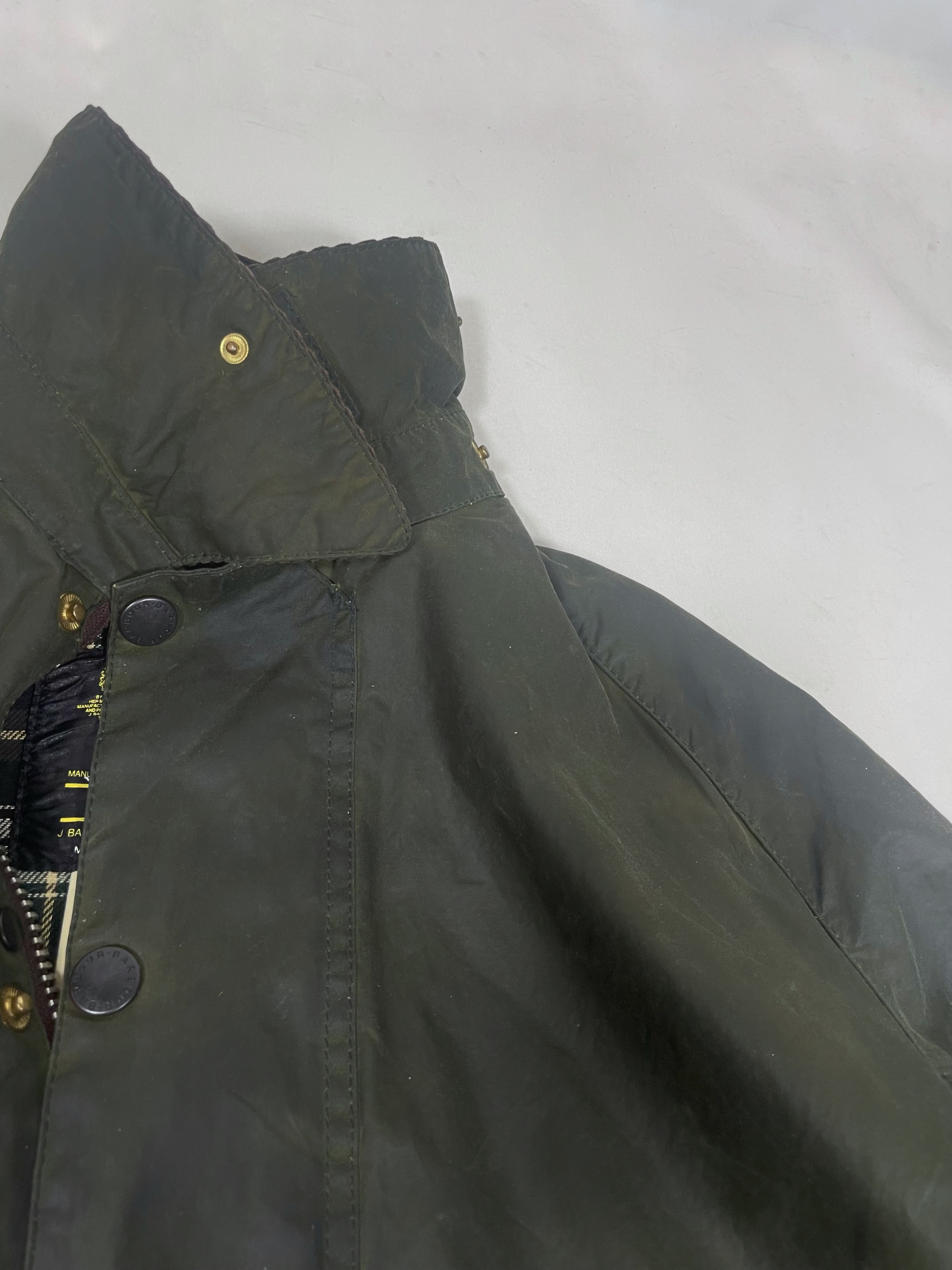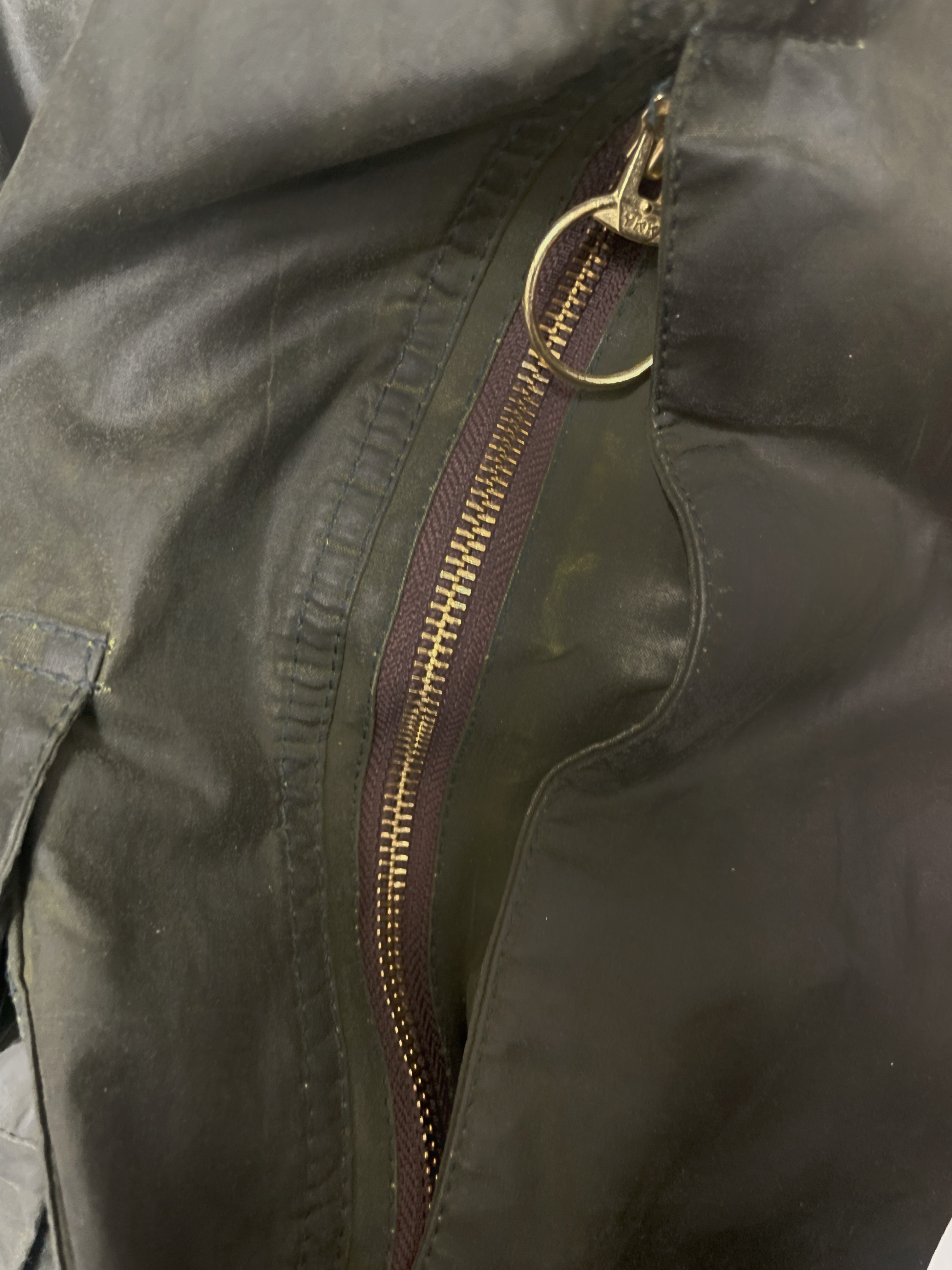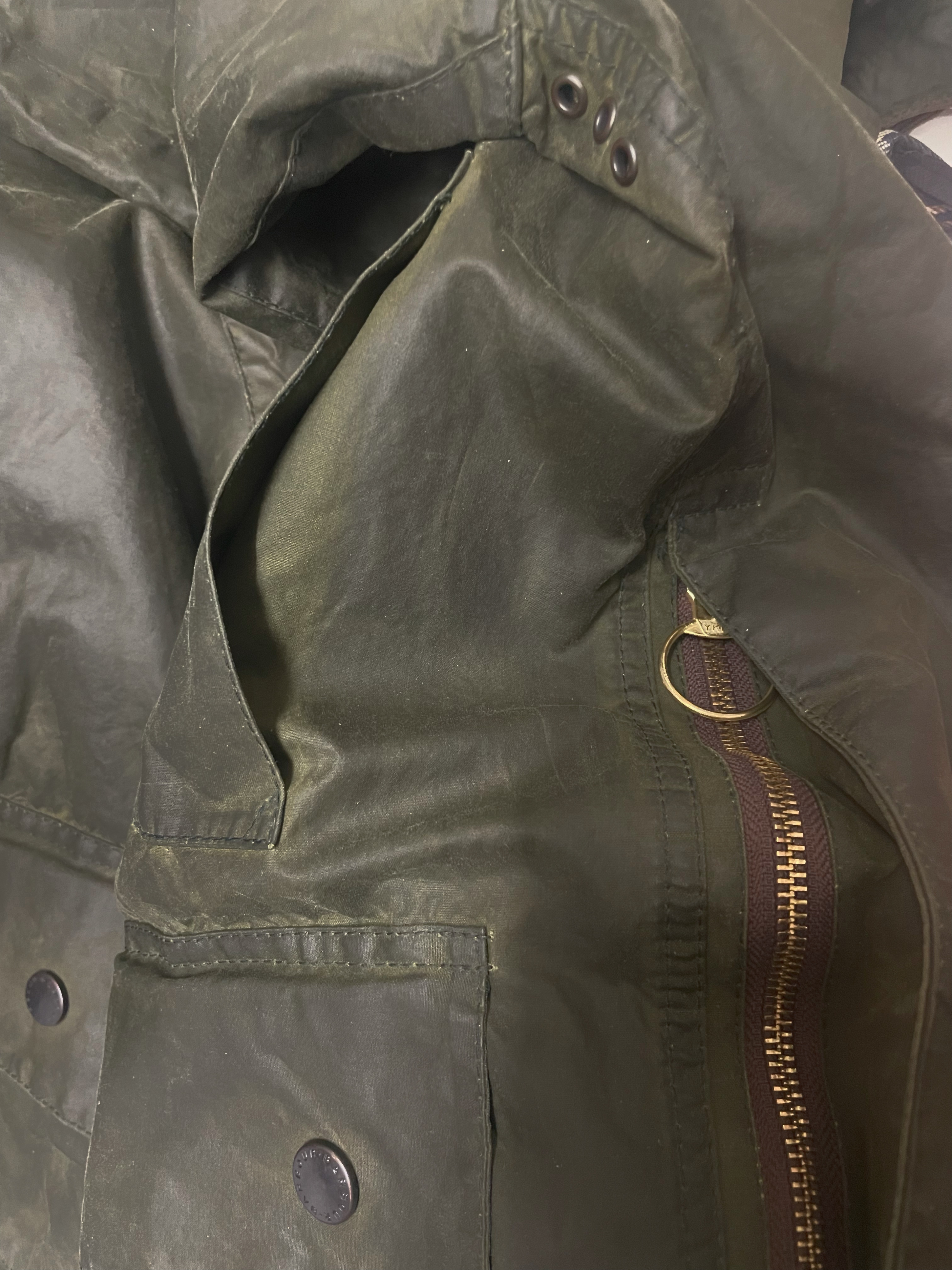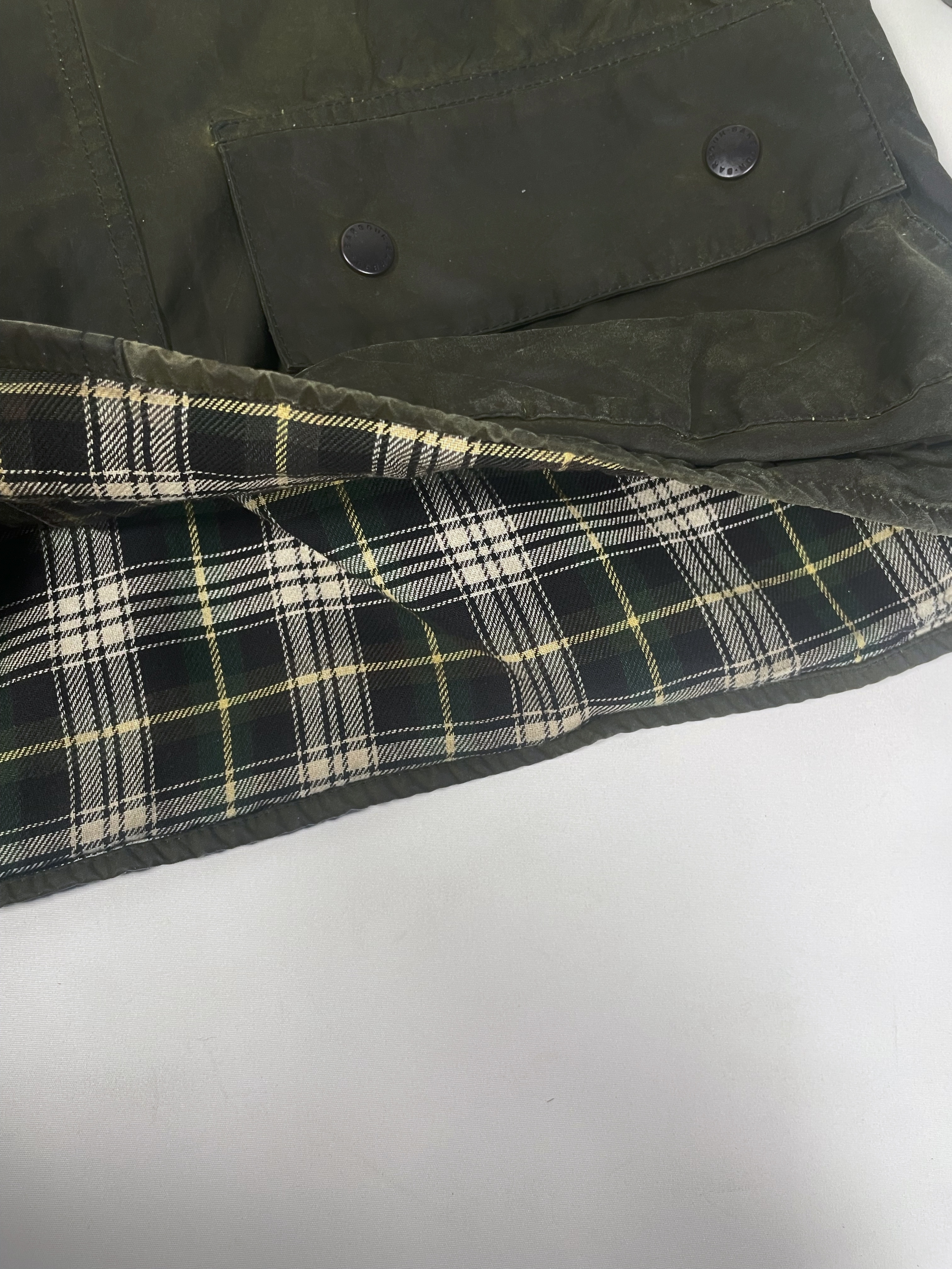 Barbour (Special Condition) モデル:BEAUFORT カラー:セージ(オリーブ) 年代 :1994年 サイズ:42 「ゆき丈:84cm 身幅:63cm 着丈:78cm」 コンディション:目視の限り小穴等ダメージはございません。※光の加減により一部色が変色してしまっているように見えますが、実物はそのような事はございませんのでご安心下さい。また、襟の汚れやボタン、ジッパーなどの機能も問題ありません。袖端、裾端のスレもなく非常に状態の良いビューフォートになります。※ミリ単位のピンホール、小傷等はお許し下さい(目で見つかったものは写真掲載します。) 一年かけて集めたほぼノンダメージのビンテージバブアーです。 実のところ全くダメージの無いバブアーは数十枚に一枚程度しかありません。(それもそのはず、捨てる理由がありませんので。) また、こちらのSpecial Conditionのバブアーは全て洗濯、クリーニング済みです。尚殆どのものがリプルーフを施し長くお使い頂ける様メンテナンスを行い商品化させて頂いてます。※ミリ単位のピンホール、小傷等はお許し下さい(目で見つかったものは写真掲載します。)コンディションの良いビンテージバブアーをお探しの方ぜひご検討下さい。