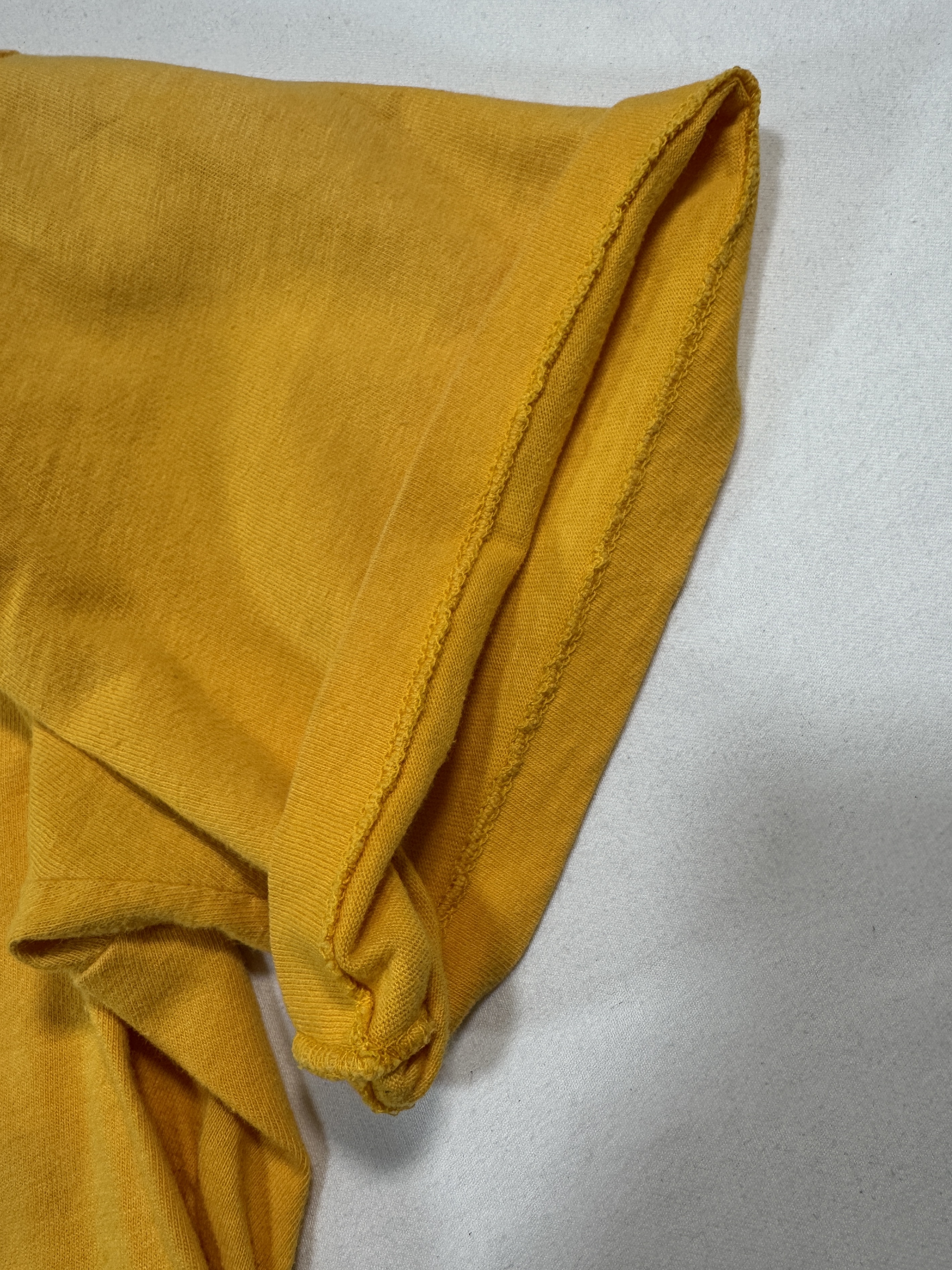 【商品説明】 ブランド: COLLEGIATE PACIFIC 年代:1960年代製 カラー:イエロー(濃いめ) ステッチ:シングルステッチ 【コンディション】 多少の着用感あり(ヴィンテージ特有の風合いとしてご理解ください) 【サイズ】 表記サイズ:L 着丈(後ろ襟の付け根中央から計測):約64cm 身幅(脇下左右):約50cm 肩幅:約45cm 袖丈:約19cm 【備考】 ・洗濯済みですぐにご着用いただけます。 ・古着にご理解のある方のみご購入をお願いいたします。