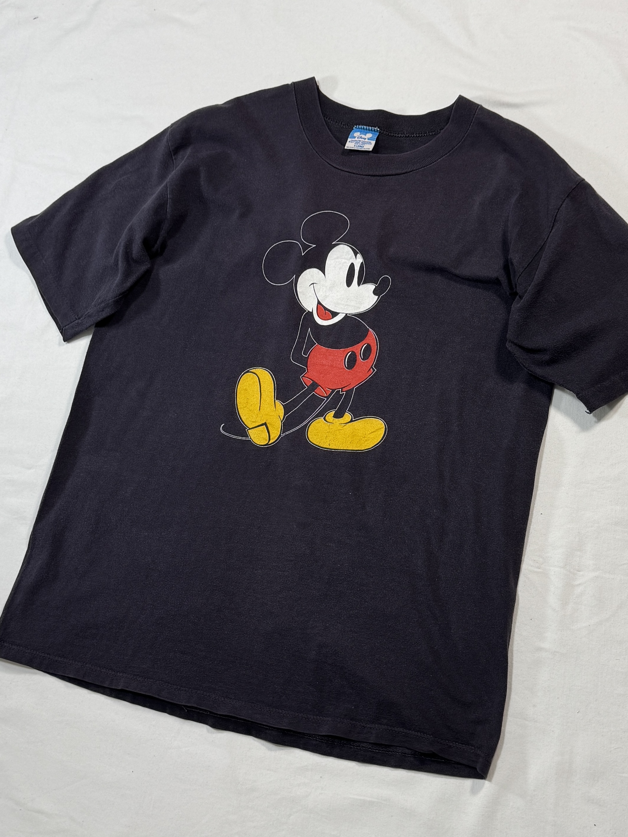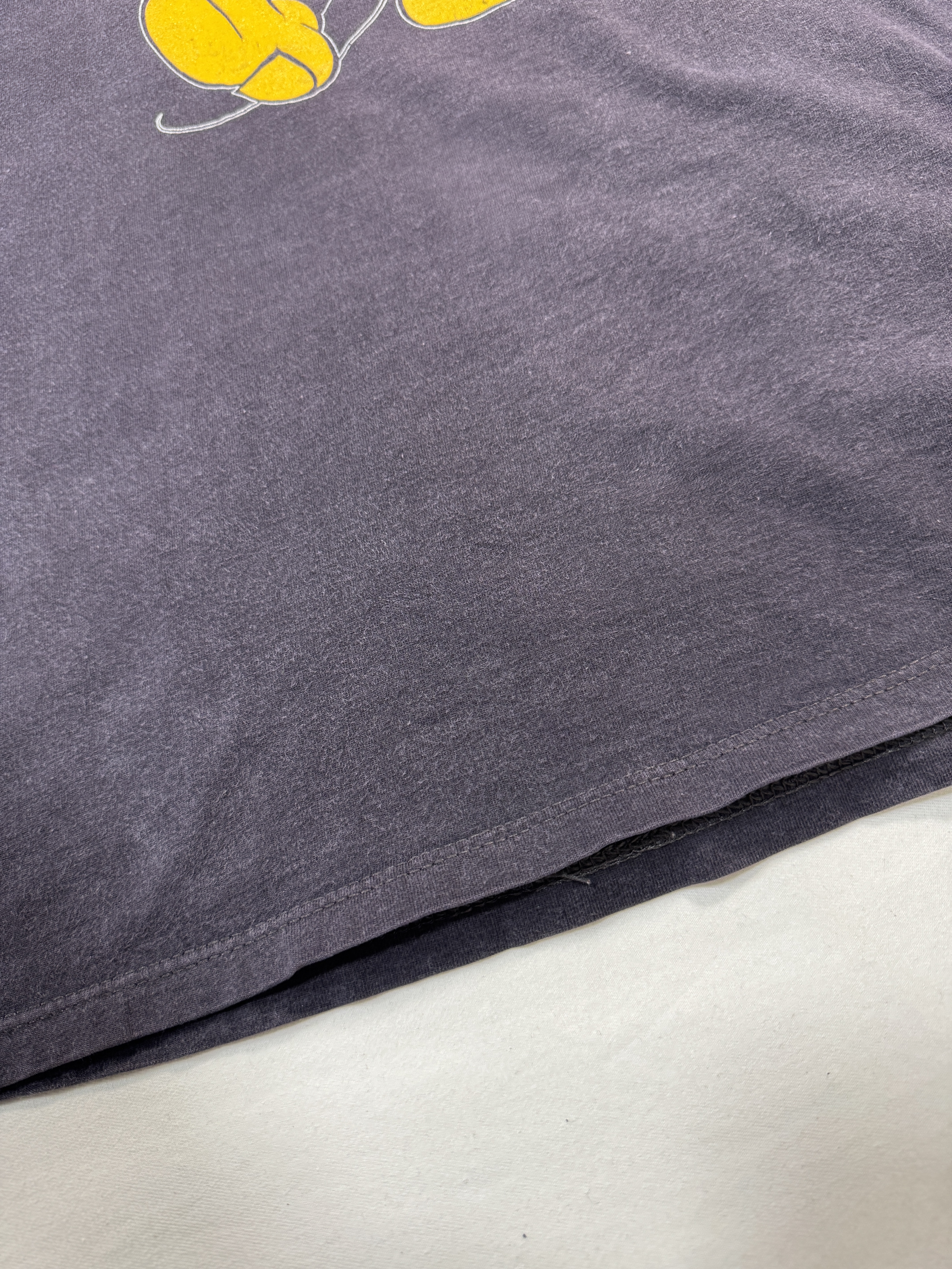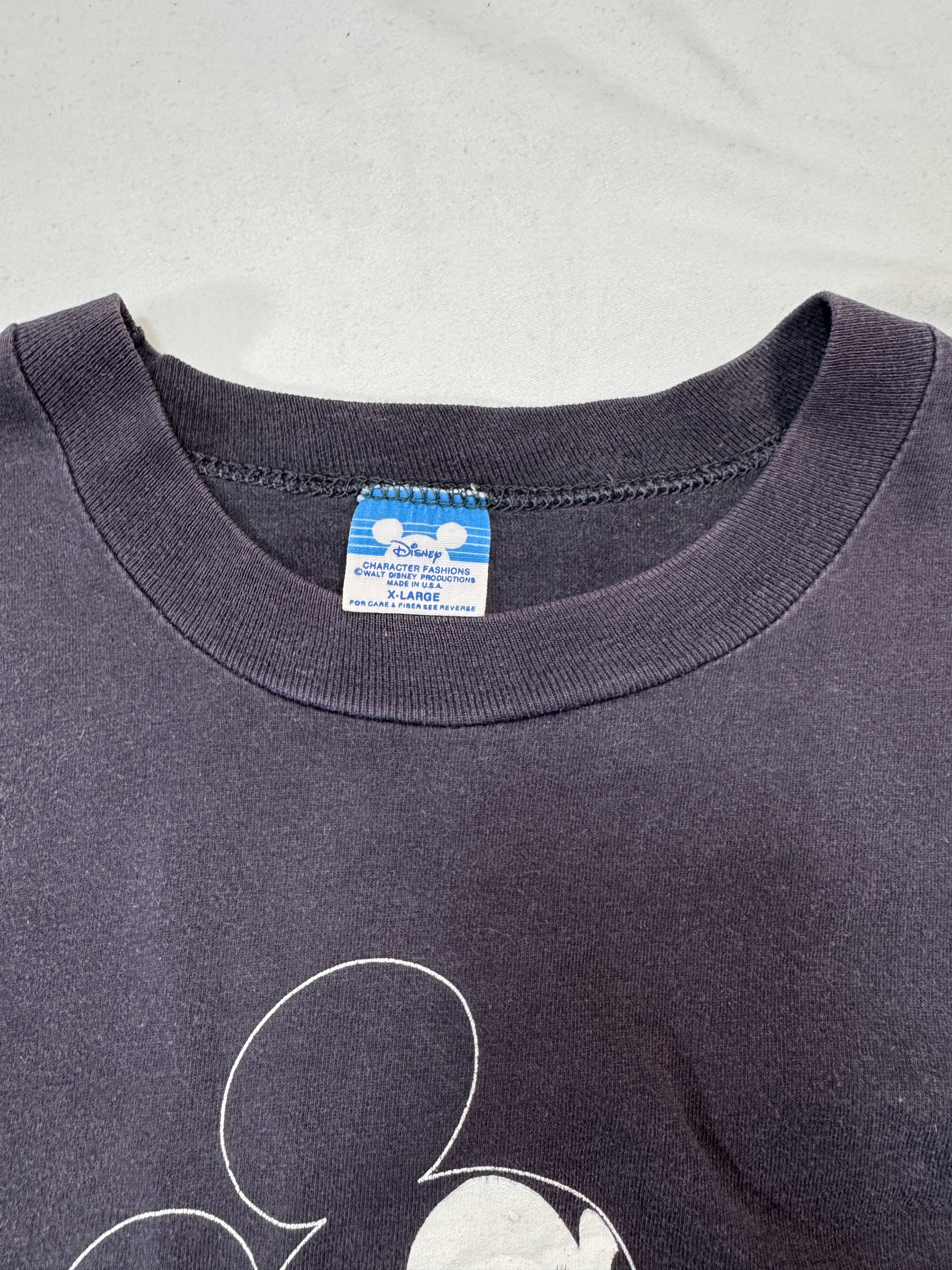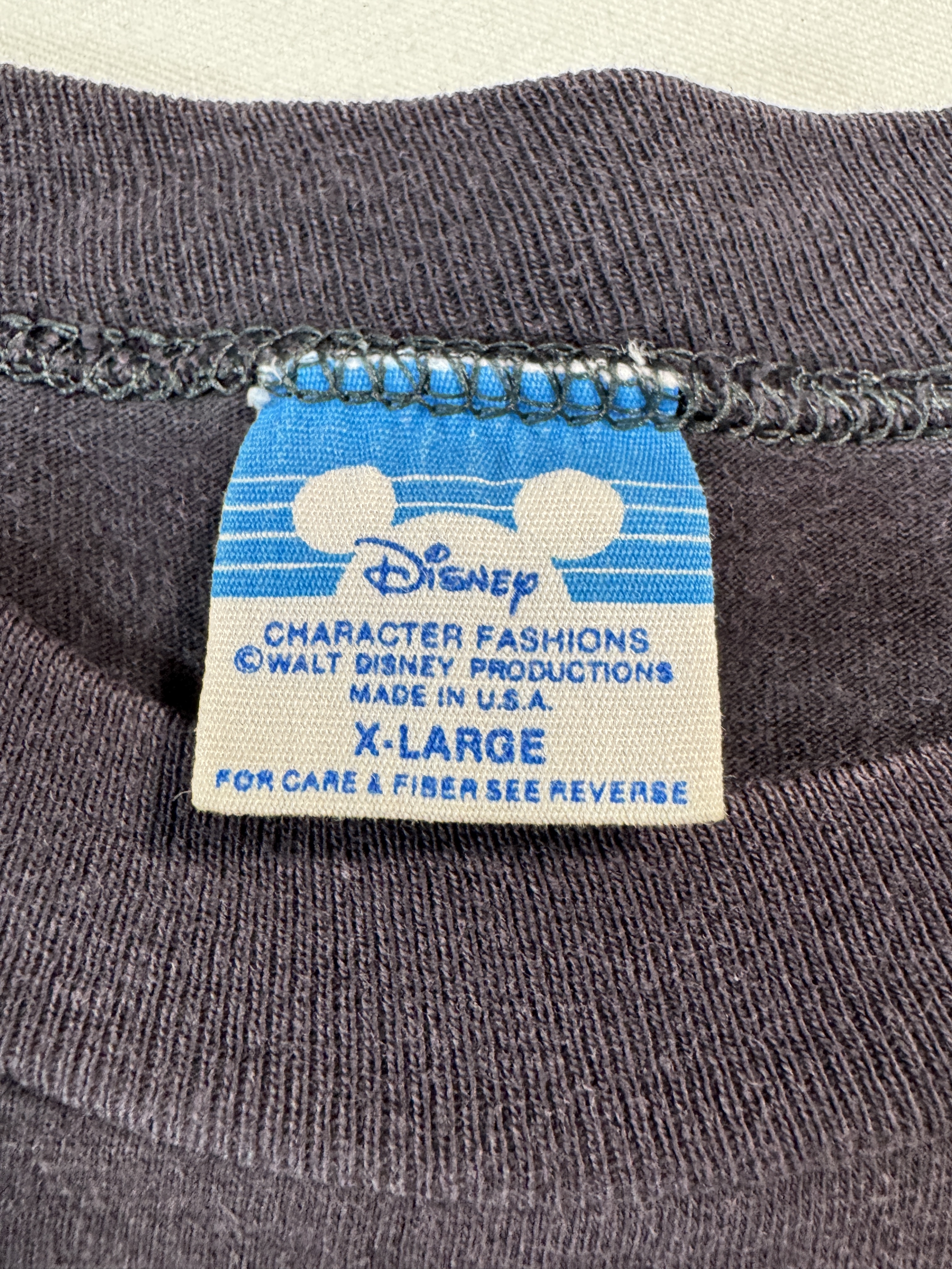 【商品説明】 ブランド:Walt Disney Productions (Micky) 年代:1980年代製 生産国:made in USA カラー:ブラック ステッチ:シングルステッチ 【コンディション】 ※撮影時の光の影響で写真の所々に紫色に見える箇所がございますが、実際の色味はブラックです。 多少の着用感あり(ヴィンテージ特有の風合いとしてご理解ください) 【サイズ】 表記サイズ:XL 着丈(後ろ襟の付け根中央から計測):約70cm 身幅(脇下左右):約55cm 肩幅:約50cm 袖丈:約23cm 【備考】 ・洗濯済みですぐにご着用いただけます。 ・古着にご理解のある方のみご購入をお願いいたします。