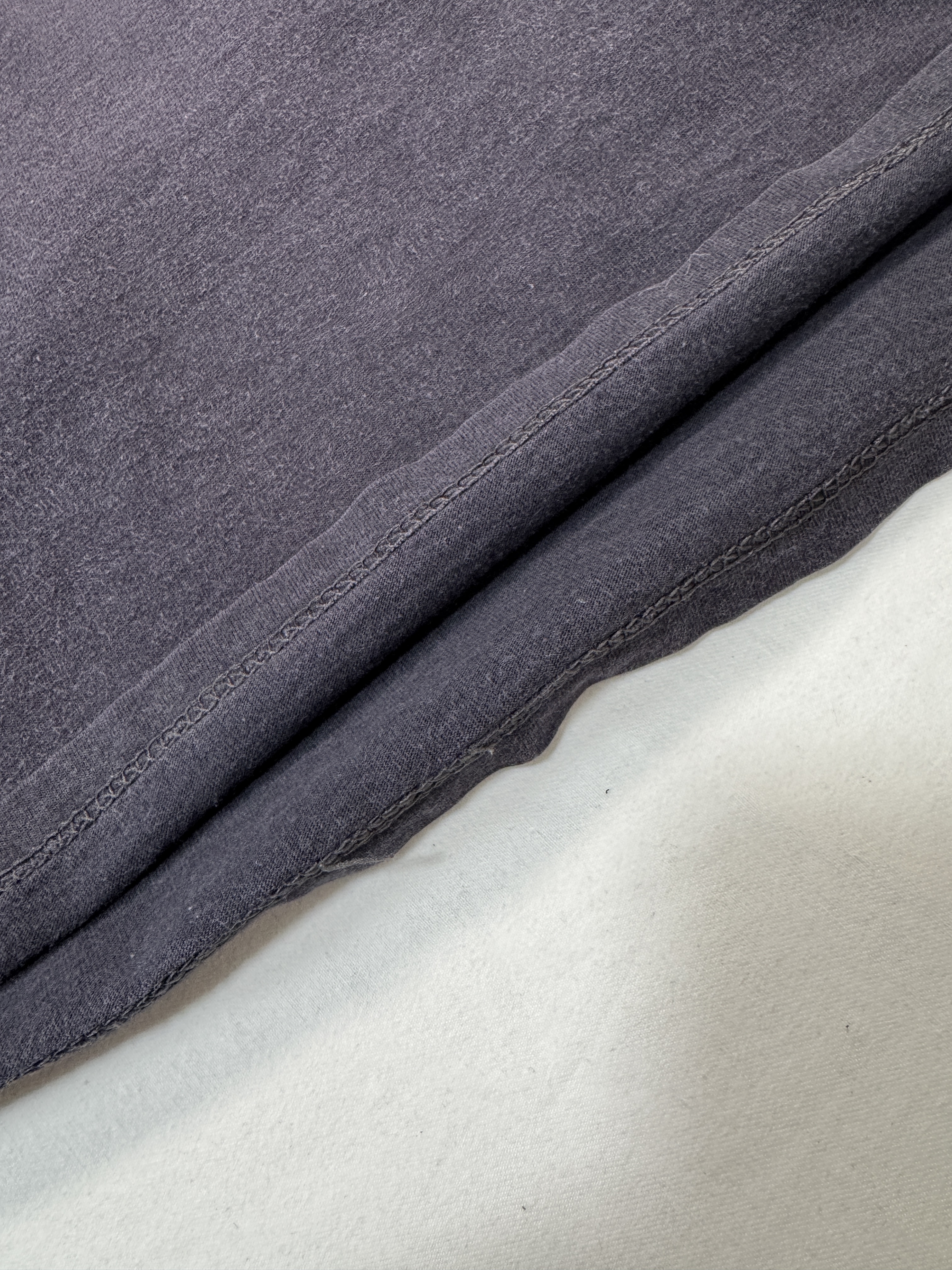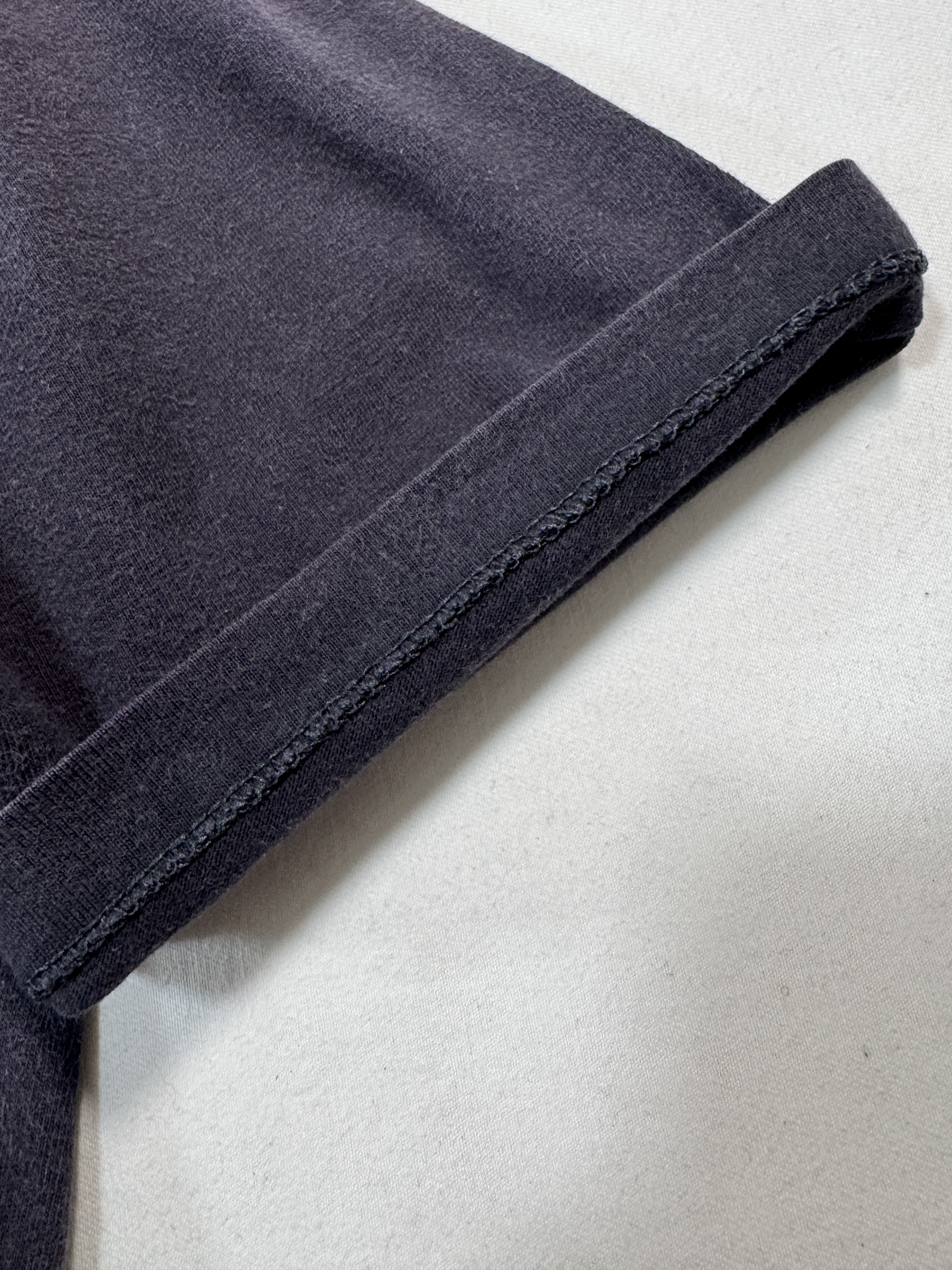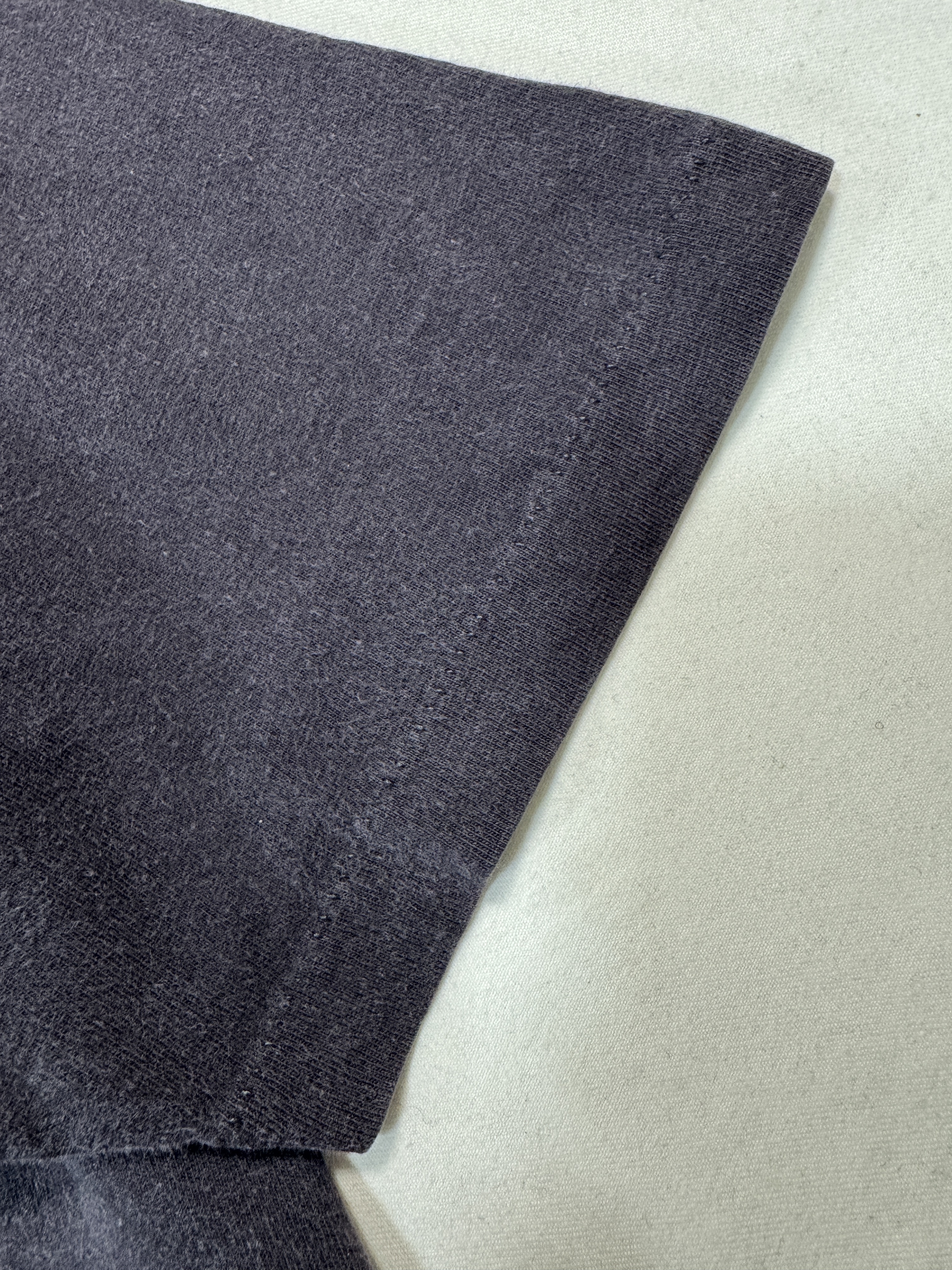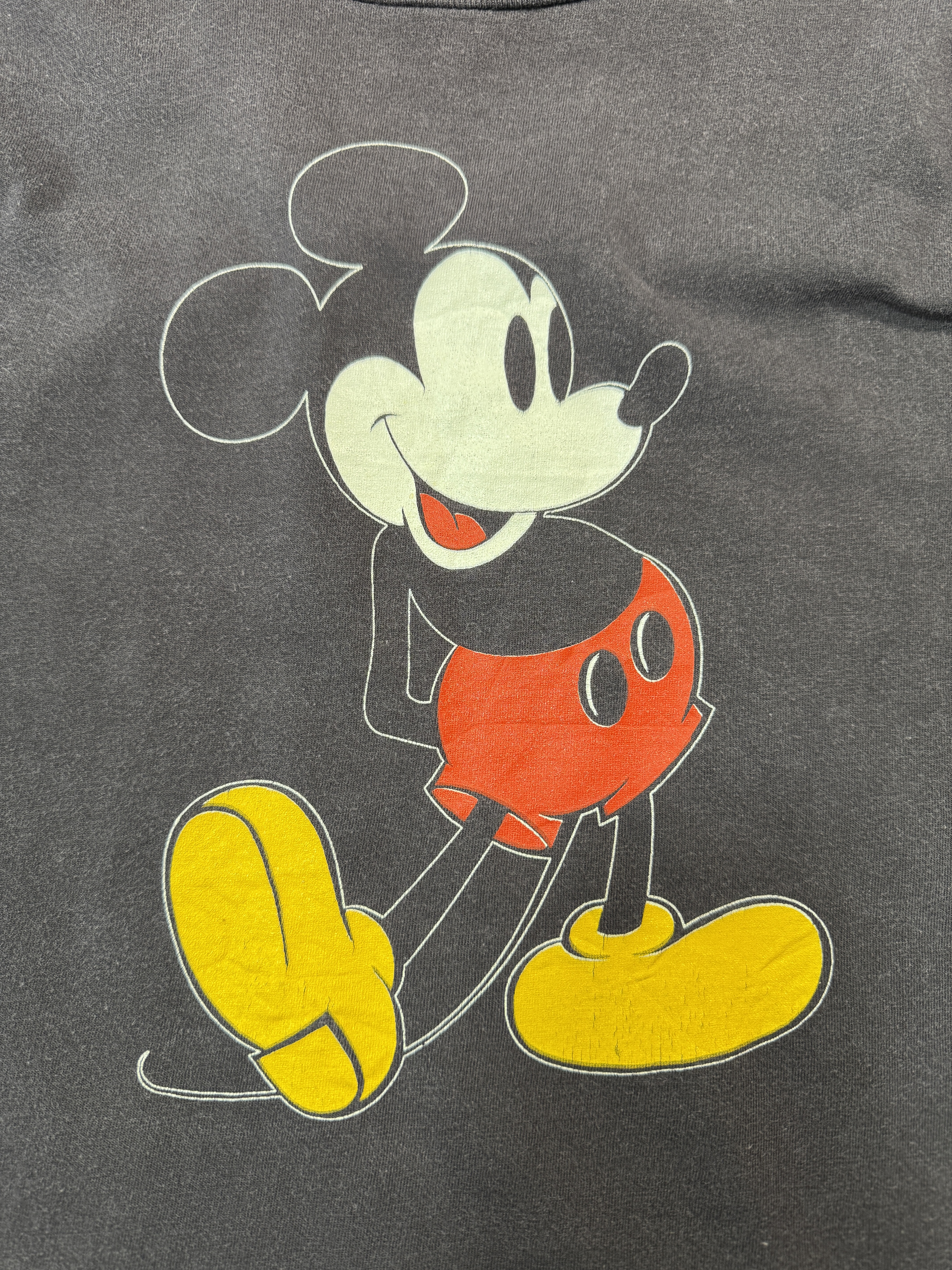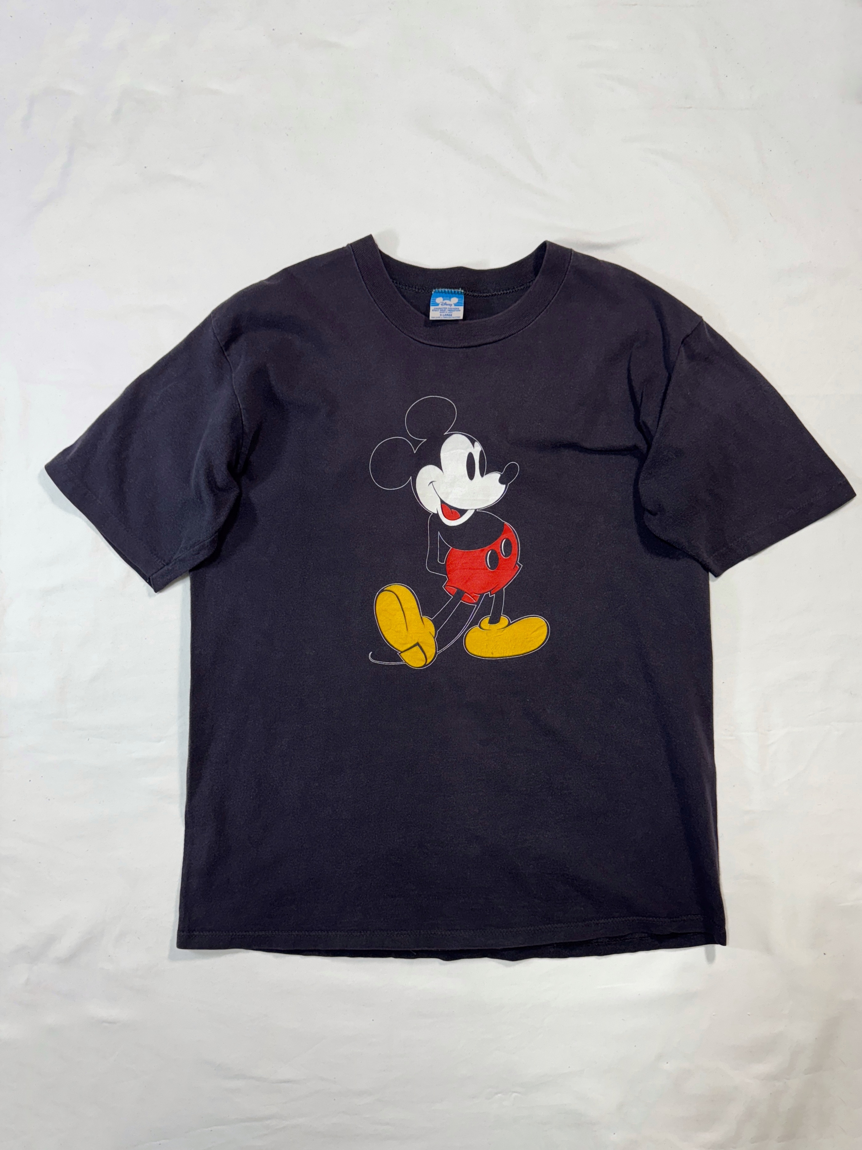 【商品説明】 ブランド:Walt Disney Productions (Micky) 年代:1980年代製 生産国:made in USA カラー:ブラック ステッチ:シングルステッチ 【コンディション】 ※撮影時の光の影響で写真の所々に紫色に見える箇所がございますが、実際の色味はブラックです。 多少の着用感あり(ヴィンテージ特有の風合いとしてご理解ください) 【サイズ】 表記サイズ:XL 着丈(後ろ襟の付け根中央から計測):約70cm 身幅(脇下左右):約55cm 肩幅:約50cm 袖丈:約23cm 【備考】 ・洗濯済みですぐにご着用いただけます。 ・古着にご理解のある方のみご購入をお願いいたします。