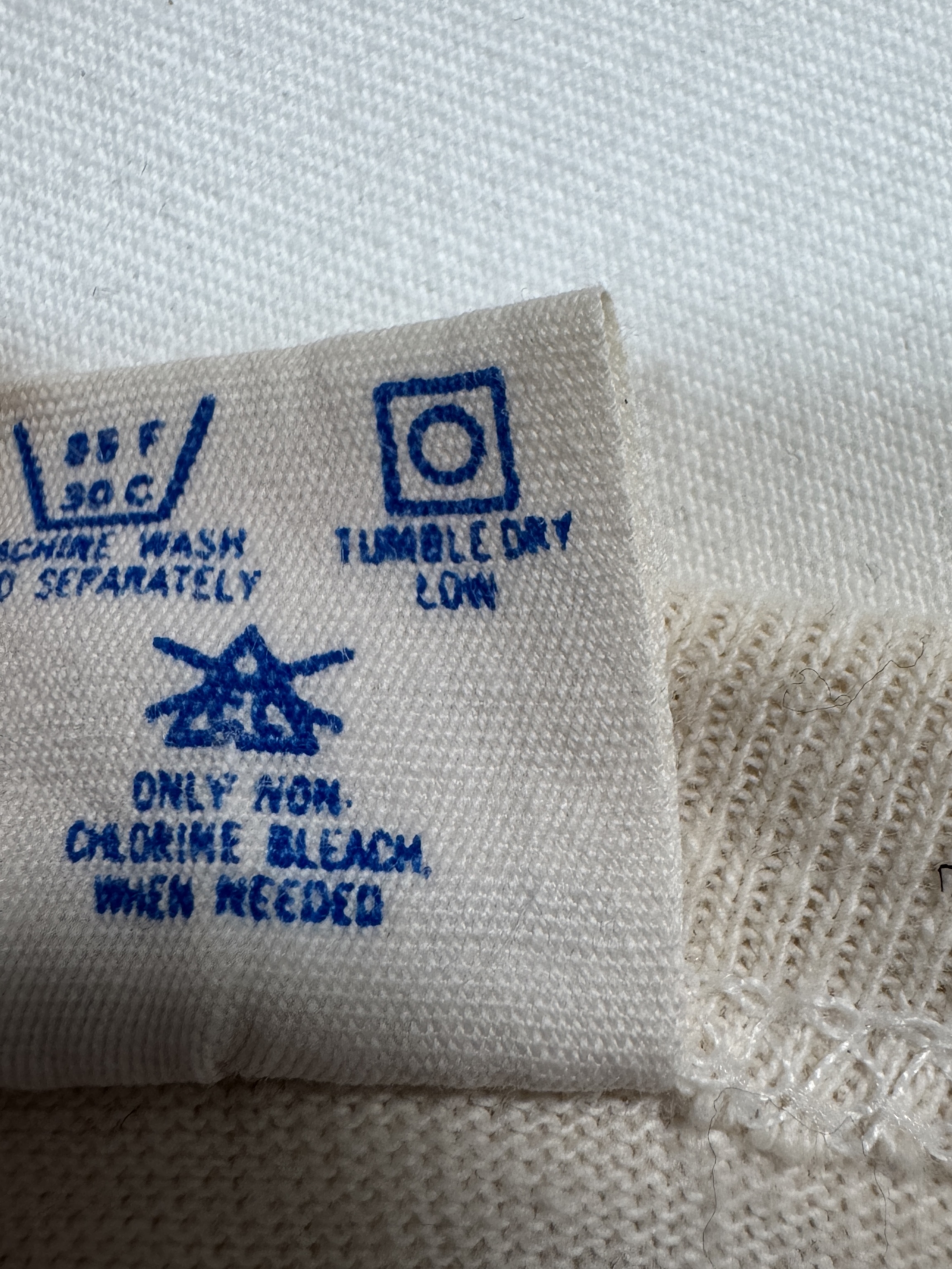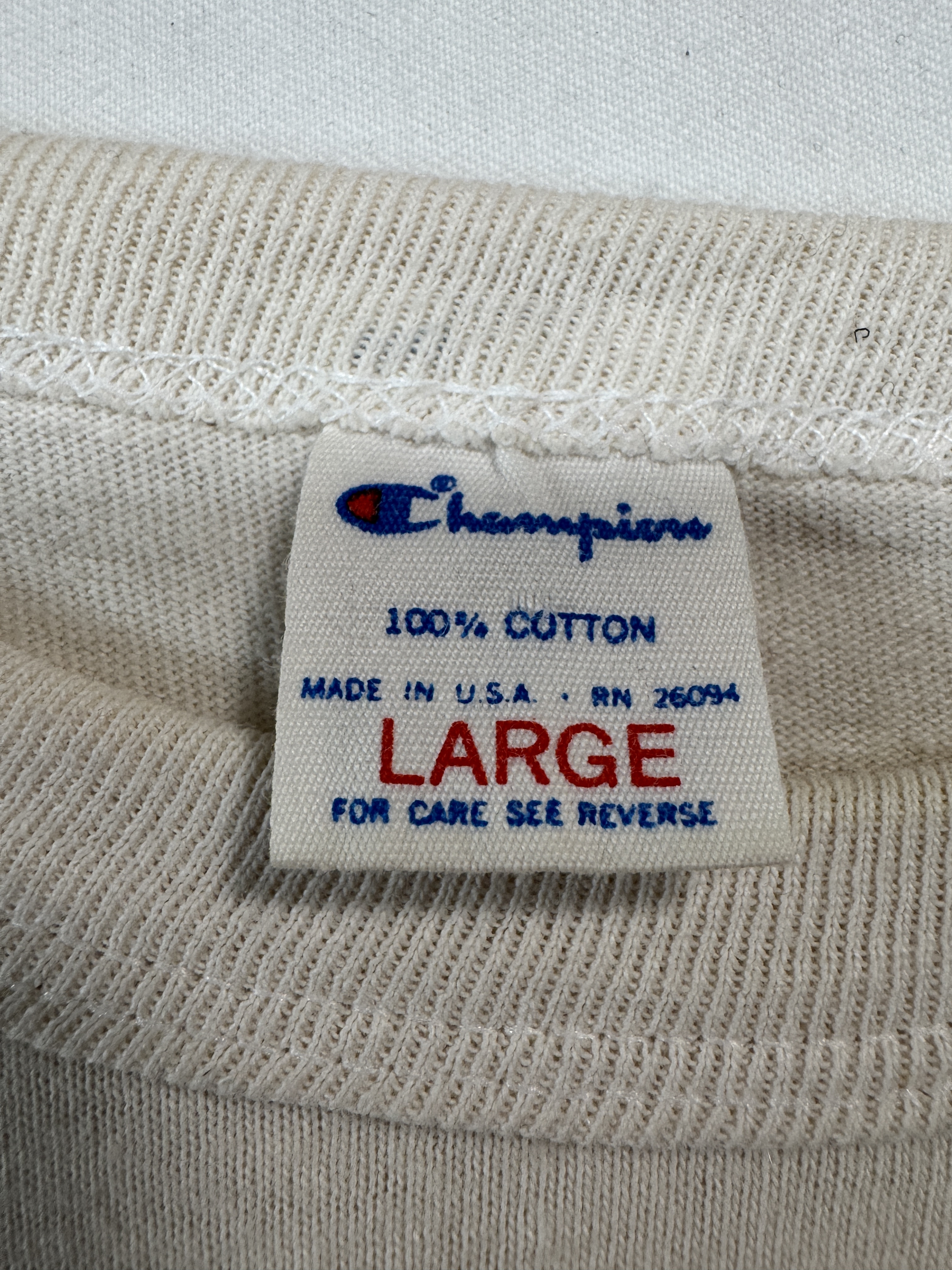 【商品説明】 ブランド:champion 年代:1985〜87年製 生産国:made in USA カラー:ホワイト ステッチ:シングルステッチ 【コンディション】 多少の着用感あり(ヴィンテージ特有の風合いとしてご理解ください) 【サイズ】 表記サイズ:L 着丈(後ろ襟の付け根中央から計測):約66cm 身幅(脇下左右):約46cm 肩幅:約46cm 袖丈:約44cm 【備考】 ・洗濯済みですぐにご着用いただけます。 ・古着にご理解のある方のみご購入をお願いいたします。