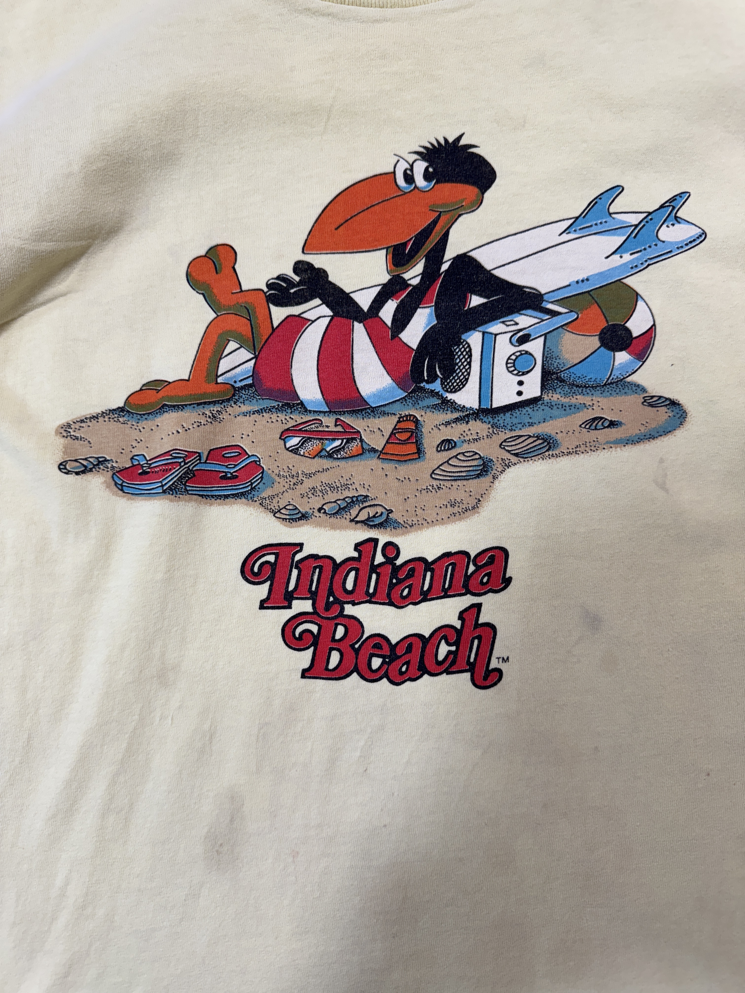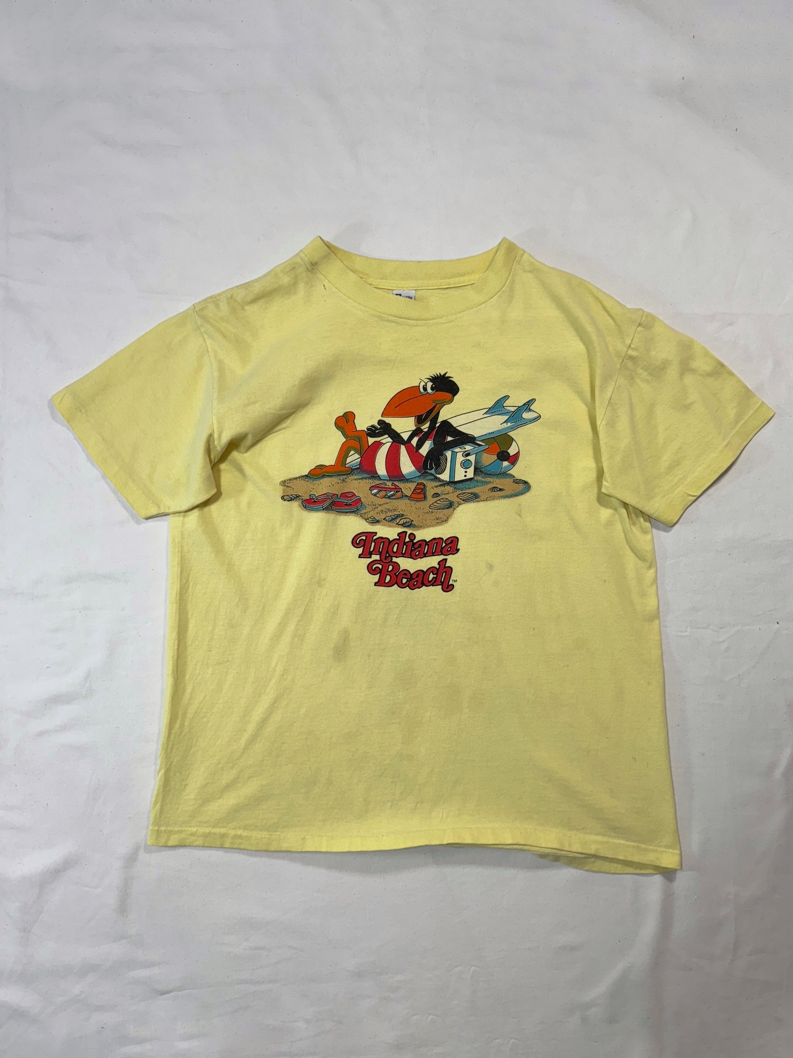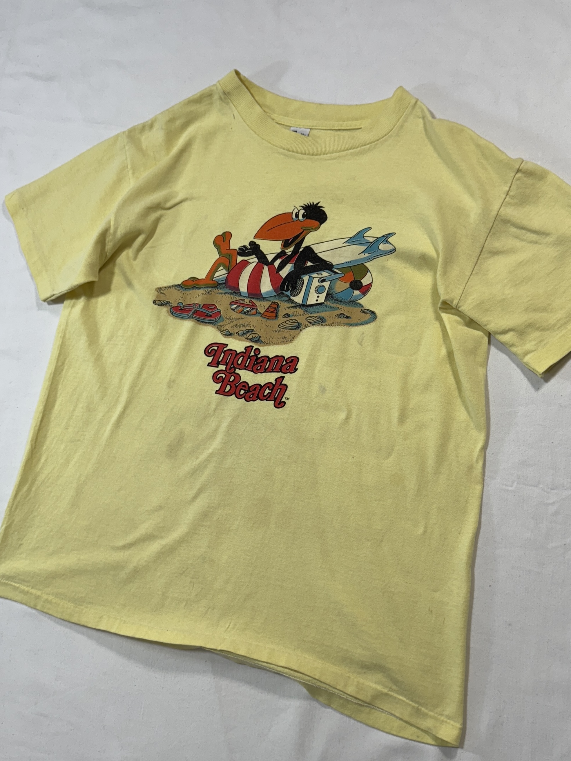 【商品説明】 ブランド:Textile Prints 年代:1980年代製 生産国:made in usa カラー:イエロー ステッチ:シングルステッチ 【コンディション】 プリント辺りに薄汚れが数箇所ございます。 襟の右側に若干のダメージが1箇所ございます。 全て画像にて掲載してますのでご確認下さい。 多少の着用感あり(ヴィンテージ特有の風合いとしてご理解ください) 【サイズ】 表記サイズ:L 着丈(後ろ襟の付け根中央から計測):約62cm 身幅(脇下左右):約55cm 肩幅:約49cm 袖丈:約18cm 【備考】 ・洗濯済みですぐにご着用いただけます。 ・古着にご理解のある方のみご購入をお願いいたします。
